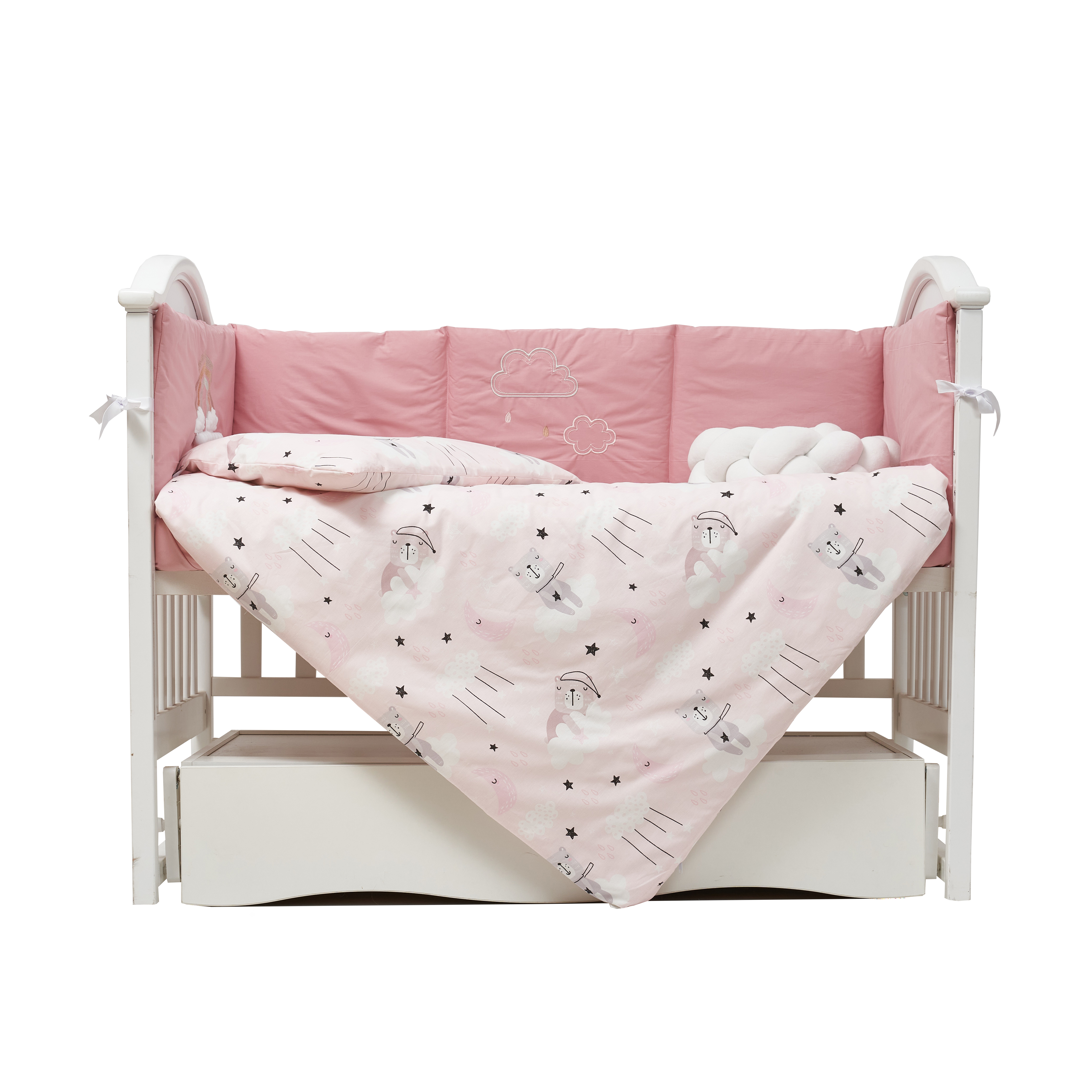 Принт с милыми мишками создает особую атмосферу уюта, а нежная вышивка на бампере добавляет комплекту эстетической привлекательности.