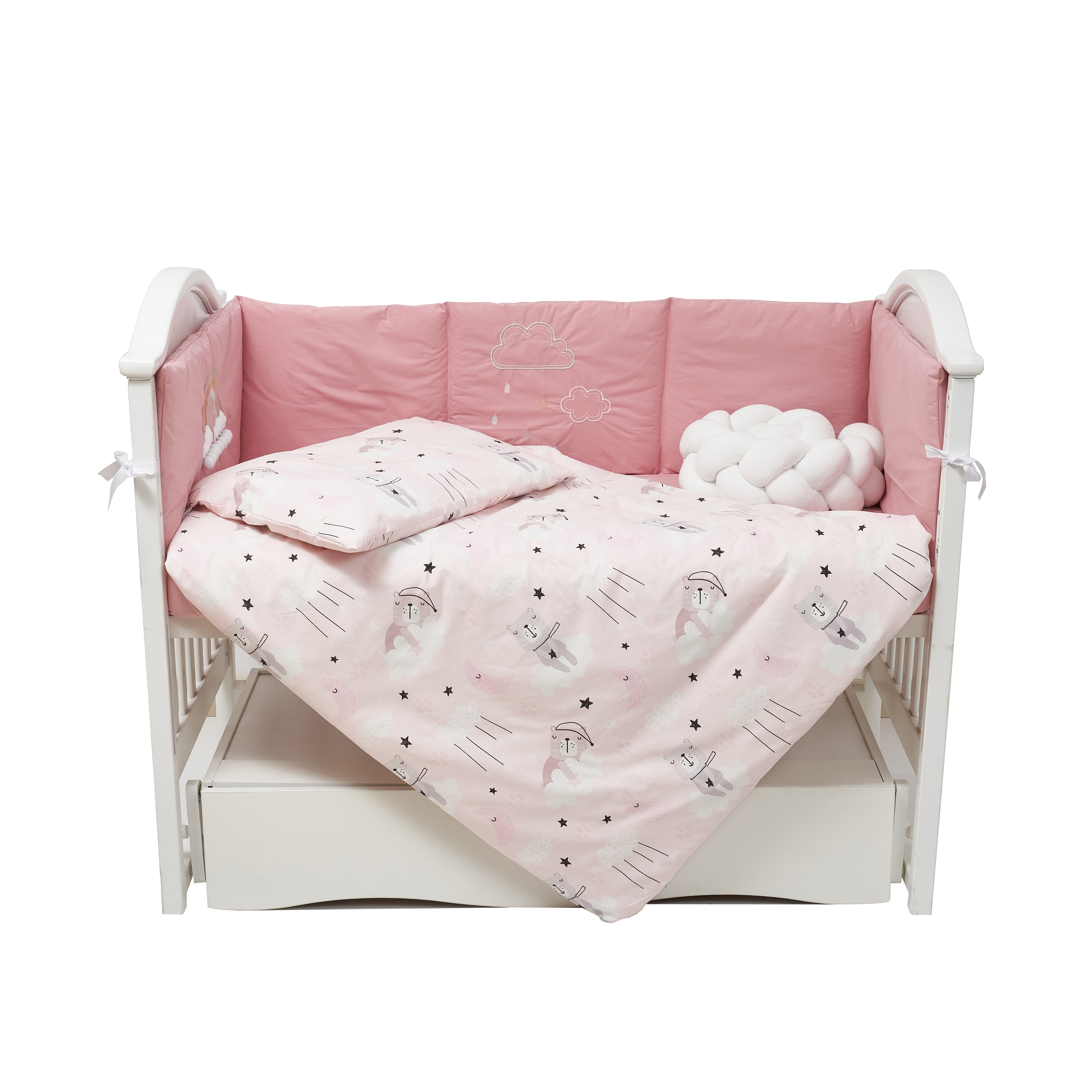 Отдельный элемент набора – декоративная косичка-бампер длиной 120 см, которая дополнительно огораживает кроватку, создавая безопасное пространство для сна.