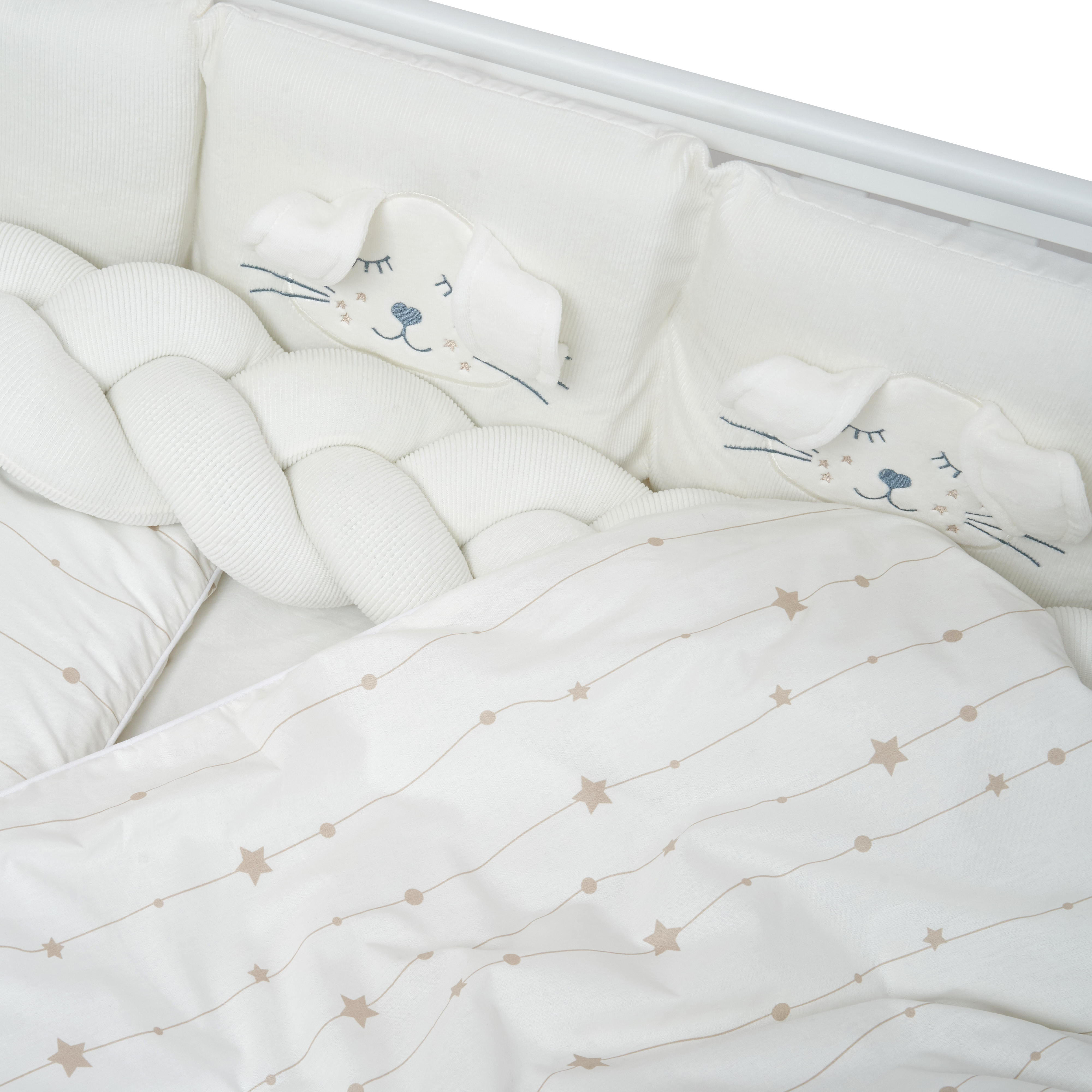 Бортик и косичка изготовлены из органического велюра - мягкого, дышащего материала, безопасного даже для самой чувствительной кожи.