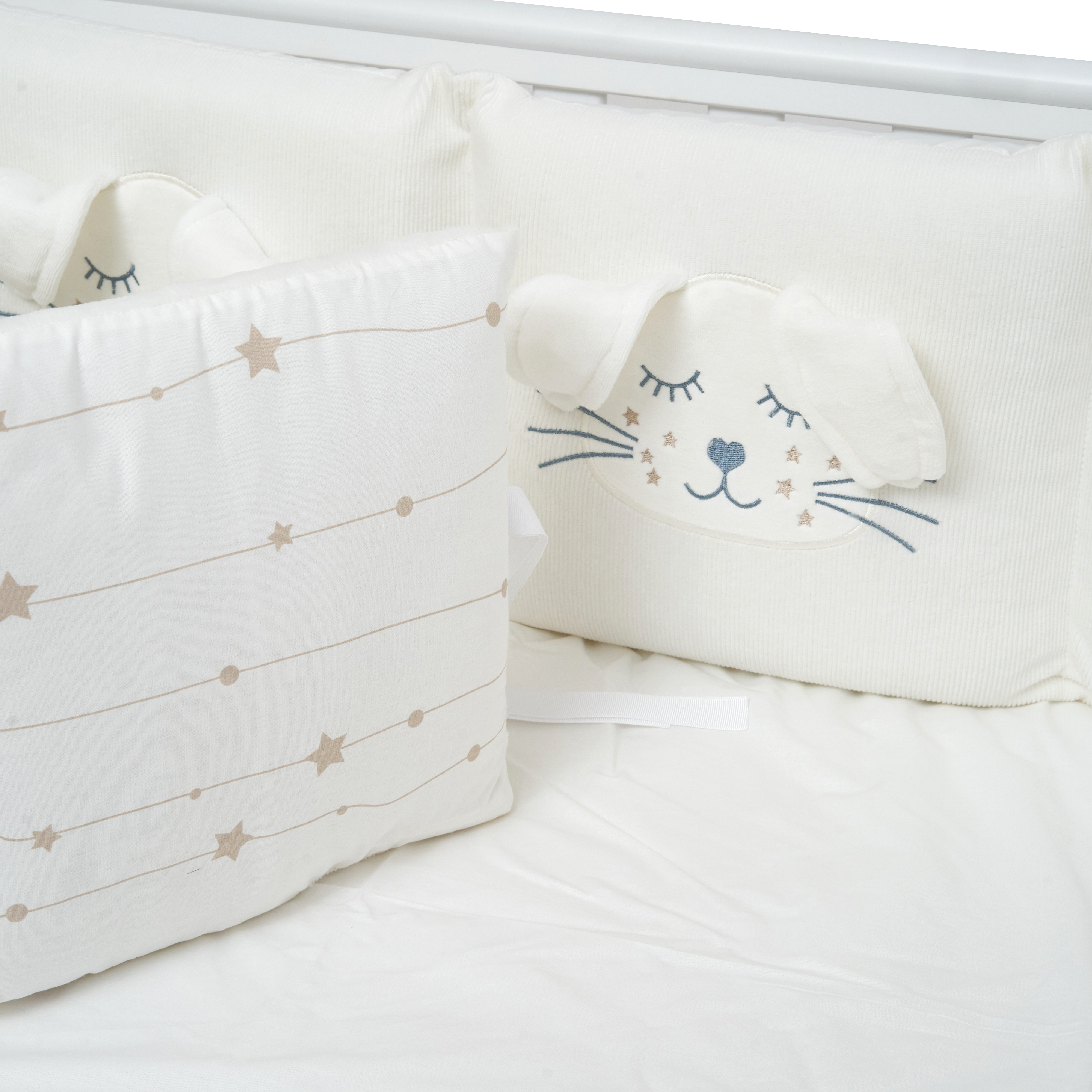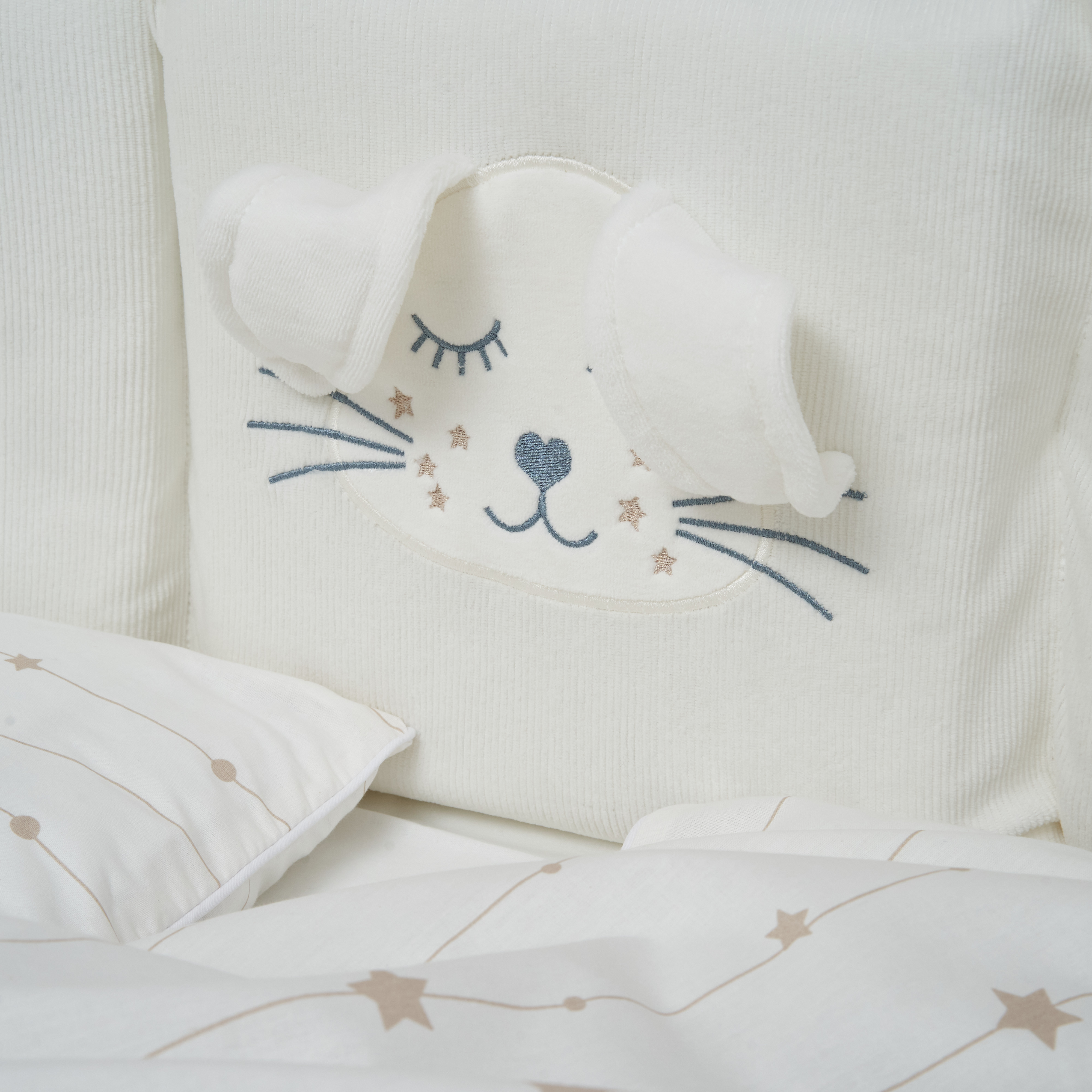 Милая вышивка кролика с объемными ушками придает постели уникальный вид и создает атмосферу уюта в детской комнате.