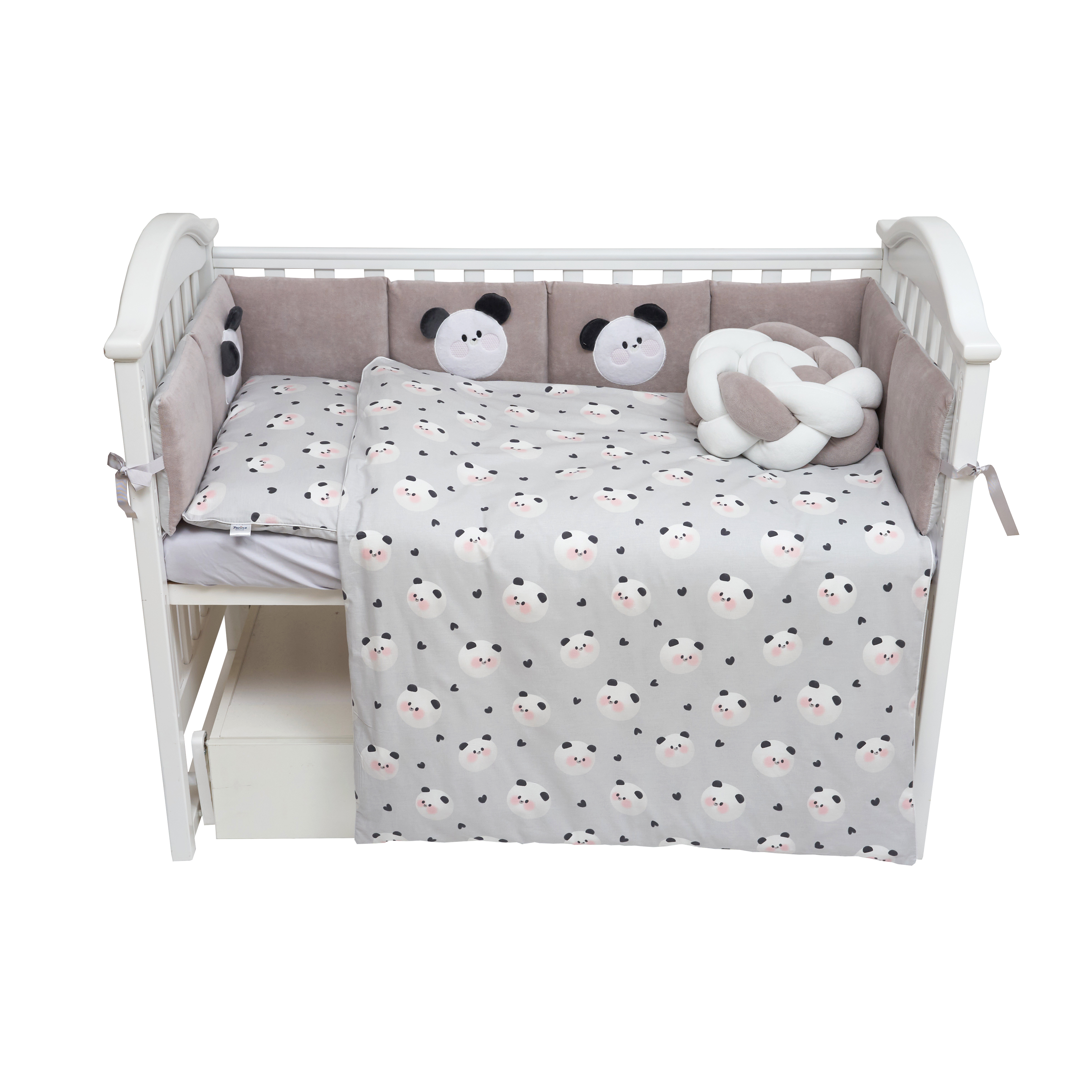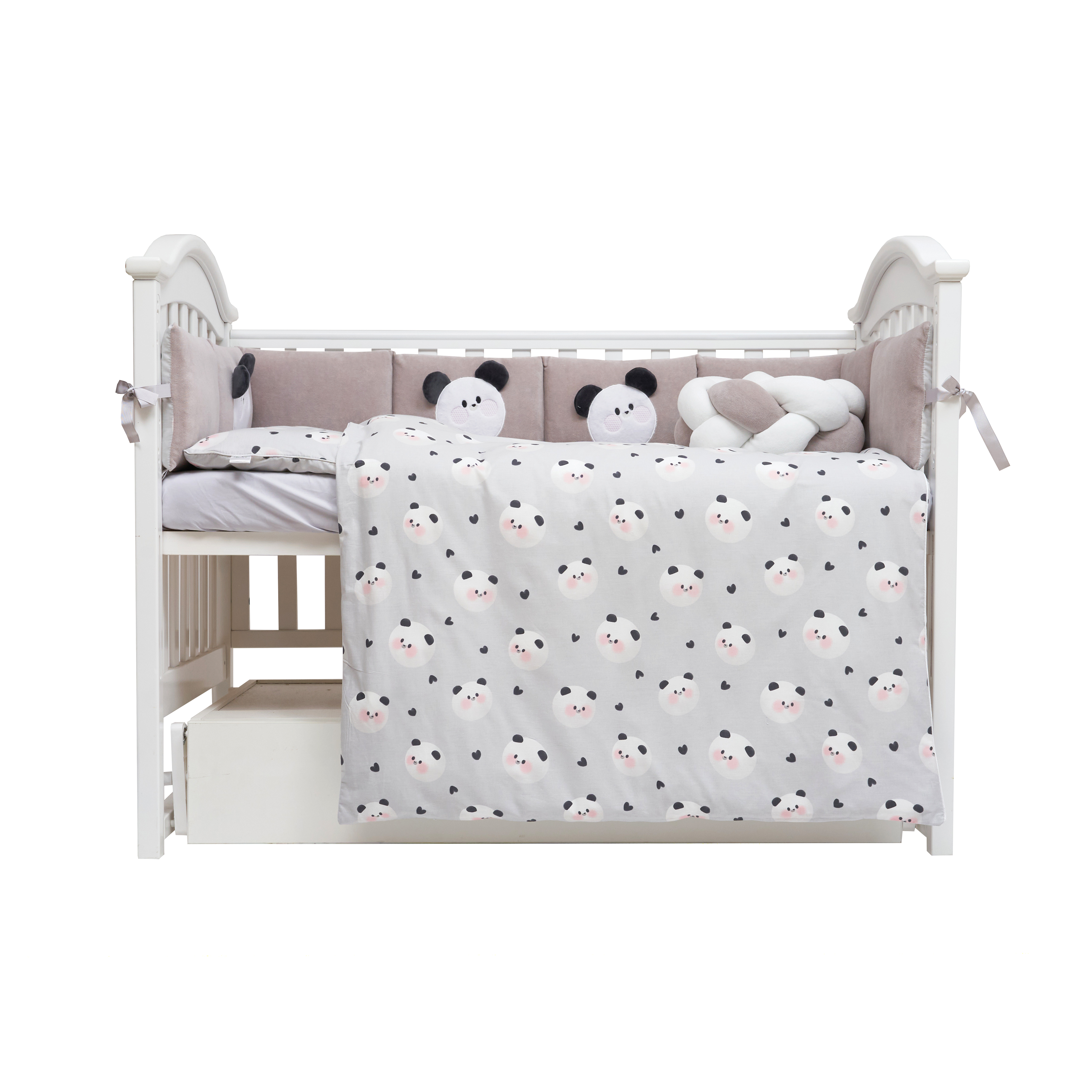 Наш набор создан из гипоаллергенных, дышащих материалов - хлопкового велюра и 100% хлопка, обеспечивающих комфортный и безопасный сон малыша.