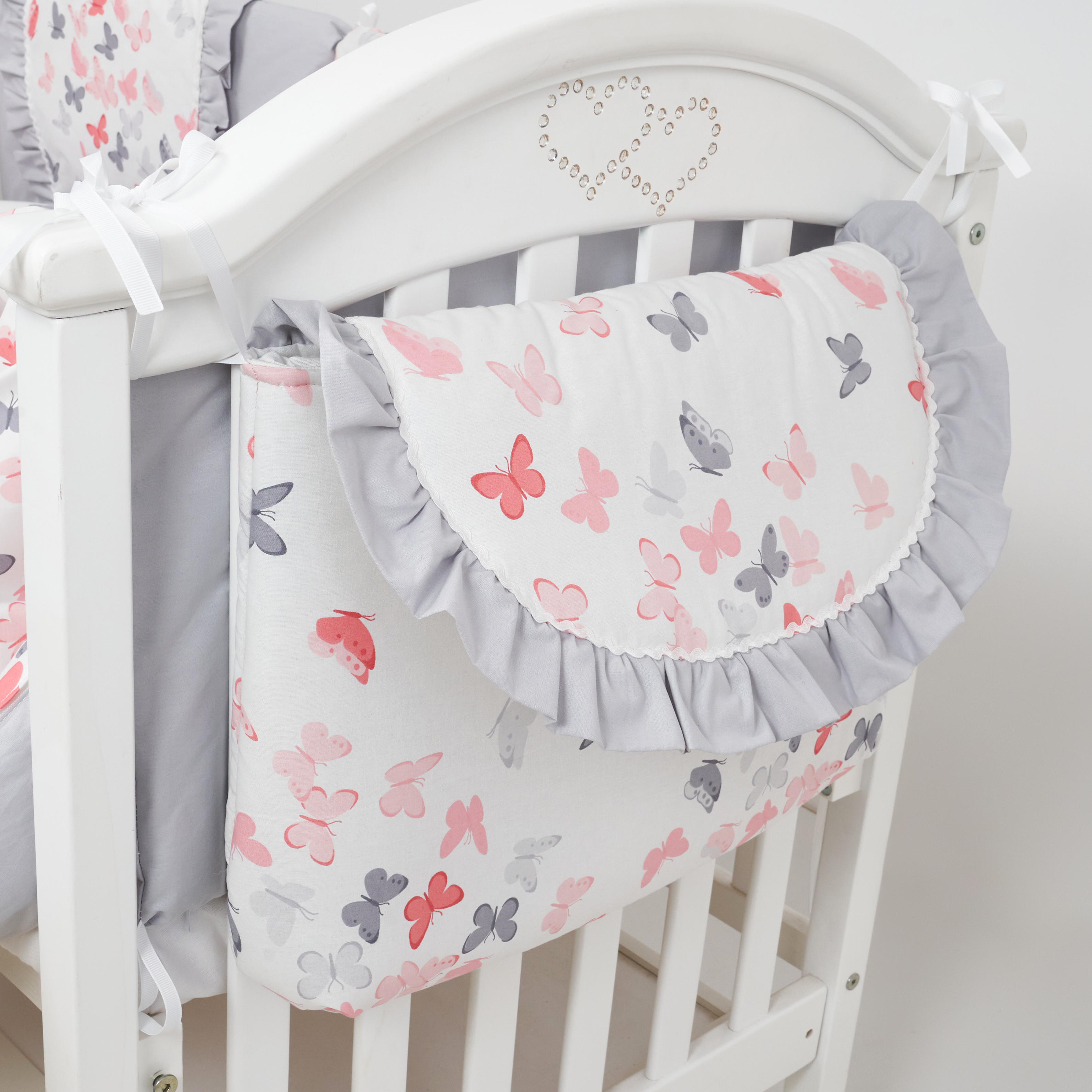 Постельный комплект Twins Romantic Spring collection – это гипоаллергенная ткань из хлопка премиум класса, наполнитель и безопасная конструкция и удобное использование. В комплект входит все необходимое для уюта и спокойного сна. К тому же все элементы гармонично подобраны по цветовой гамме. В навесном кармане удобно хранить необходимые безделушки, которые могут понадобиться ребенку. Двухсторонний бампер защищает от прямых сквозняков, ударов во время сна и игр в кроватке.