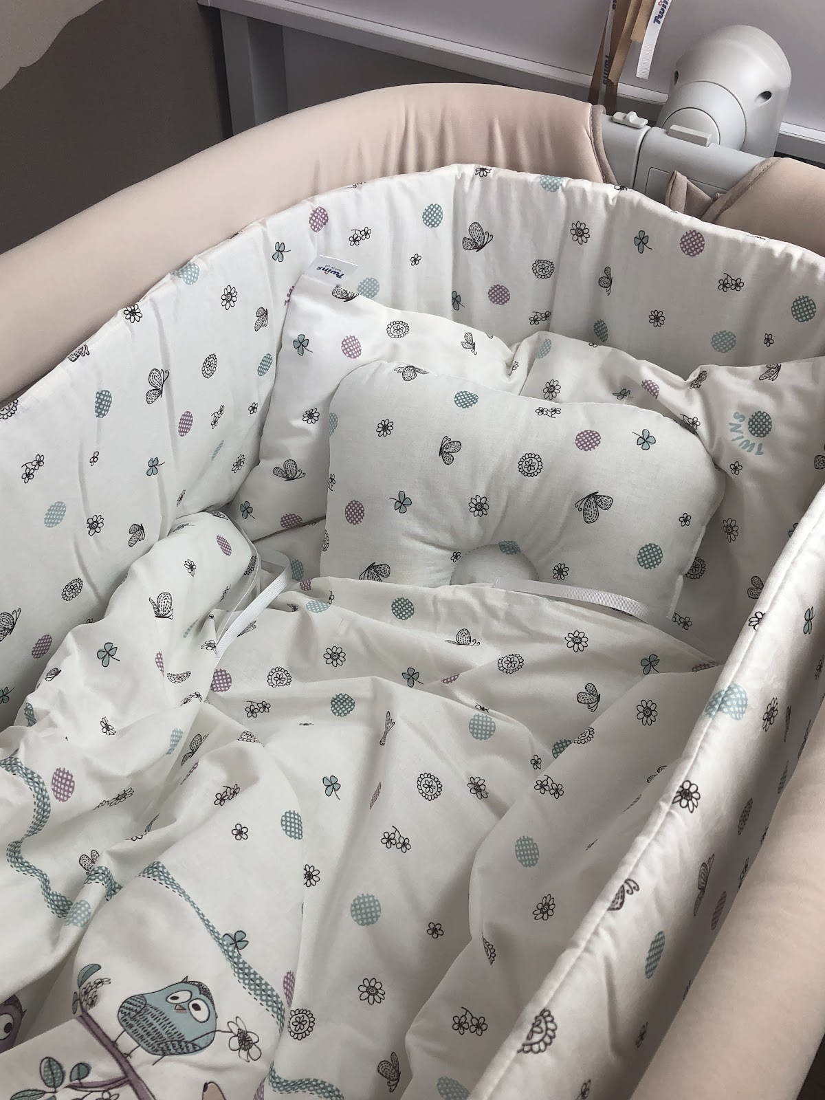 Комплект постельного белья Twins специально создан для детских электрических люлек со спальным местом размером 90x50 см.