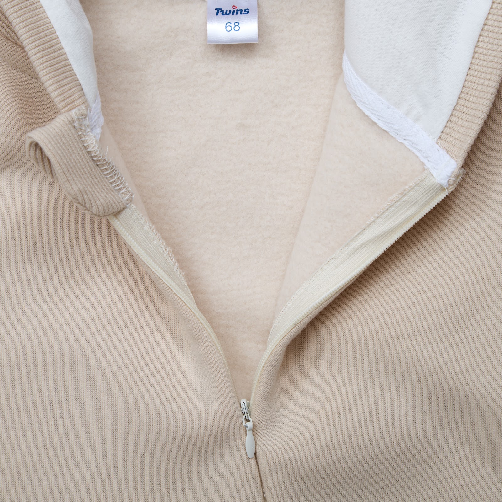 Детский ромпер Twins трикотажный на флисе с капюшоном – теплая и удобная одежда для младенца в прохладное время года.