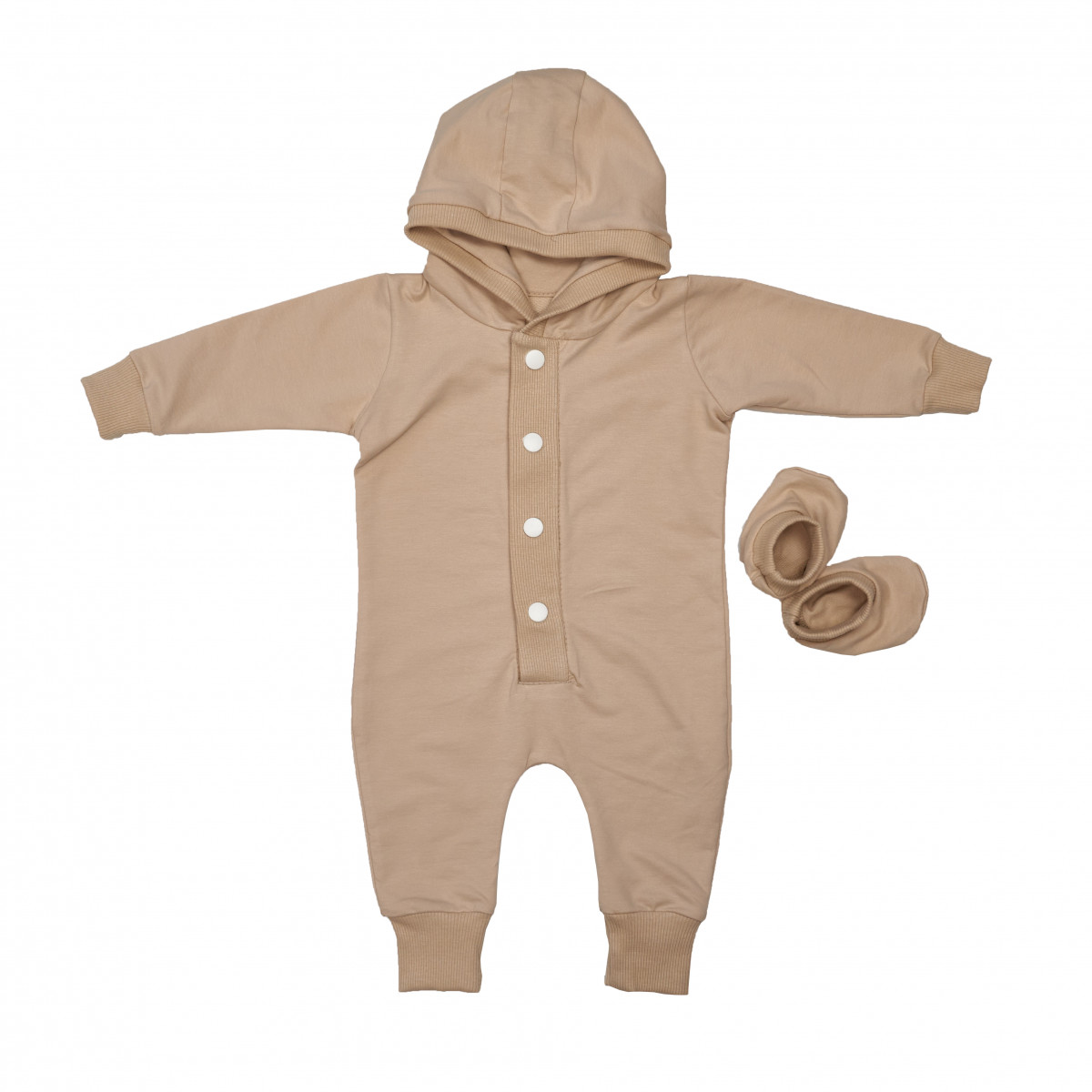Стильный трикотажный ромпер, украшенный функциональными кнопками для быстрого и комфортного переодевания малыша.