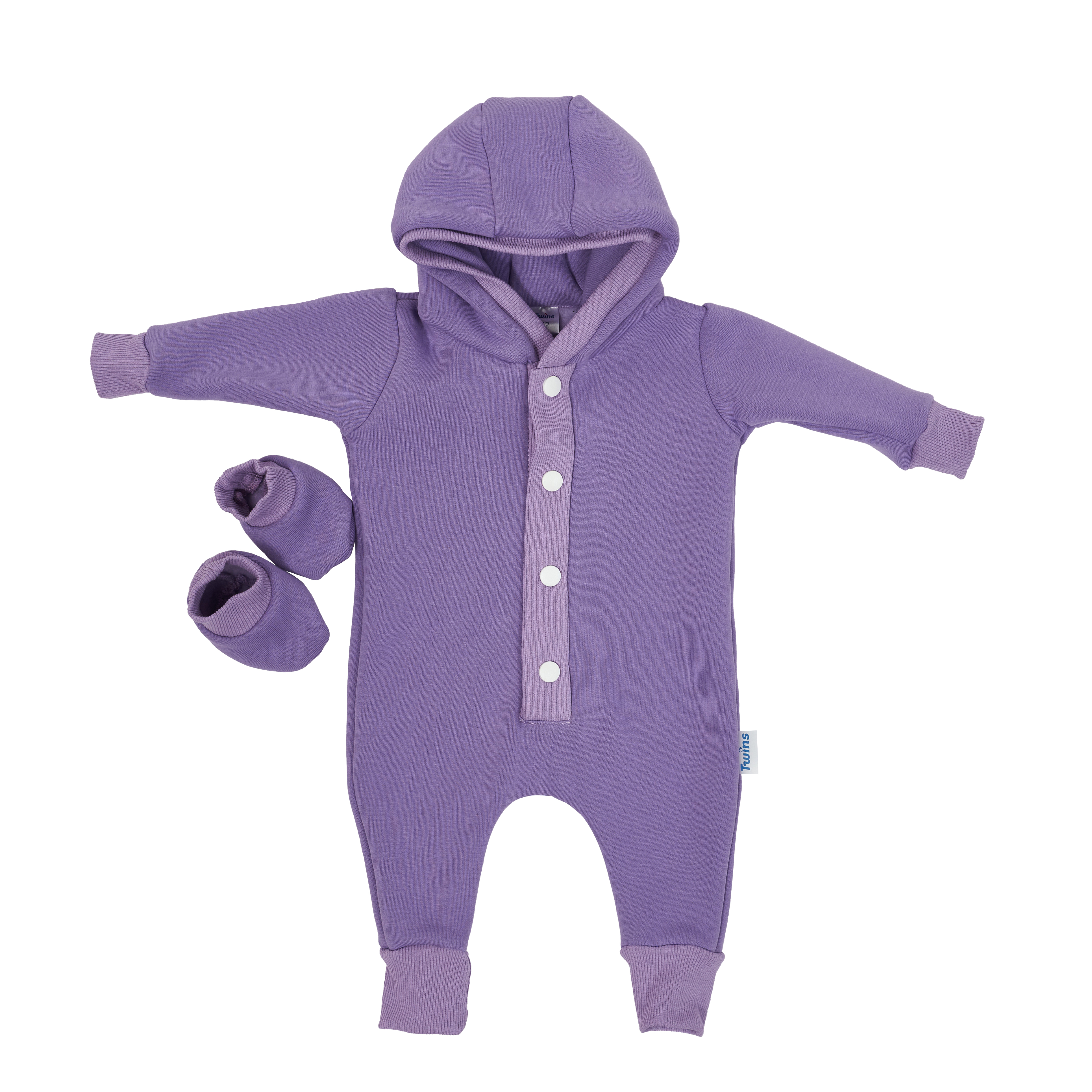Стильный утепленный трикотажный ромпер на флисе, украшенный функциональными кнопками для быстрого и комфортного переодевания малыша.