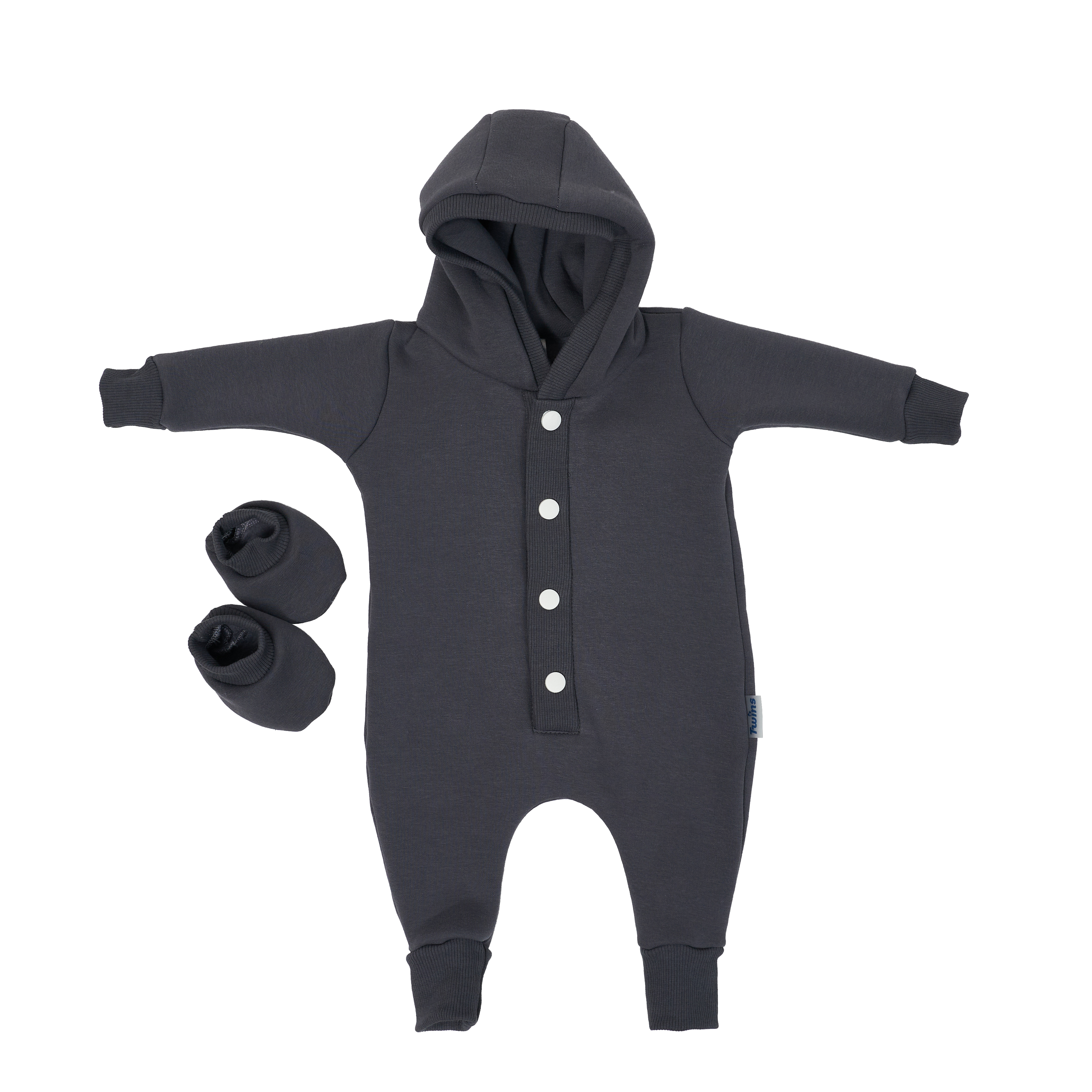 Стильный утепленный трикотажный ромпер на флисе, украшенный функциональными кнопками для быстрого и комфортного переодевания малыша.