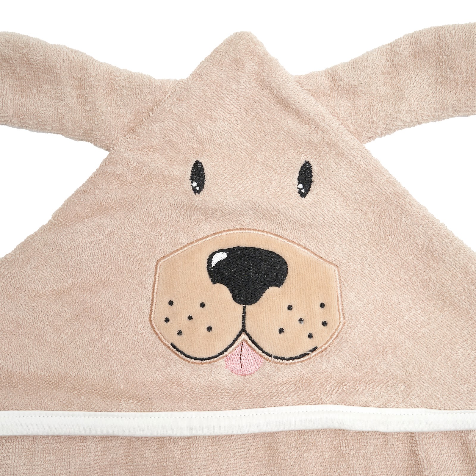 Для дополнительного удобства полотенце оснащено кнопками-фиксаторами, которые позволяют застегнуть его под подбородком, чтобы капюшон плотно держался и не сползал.
