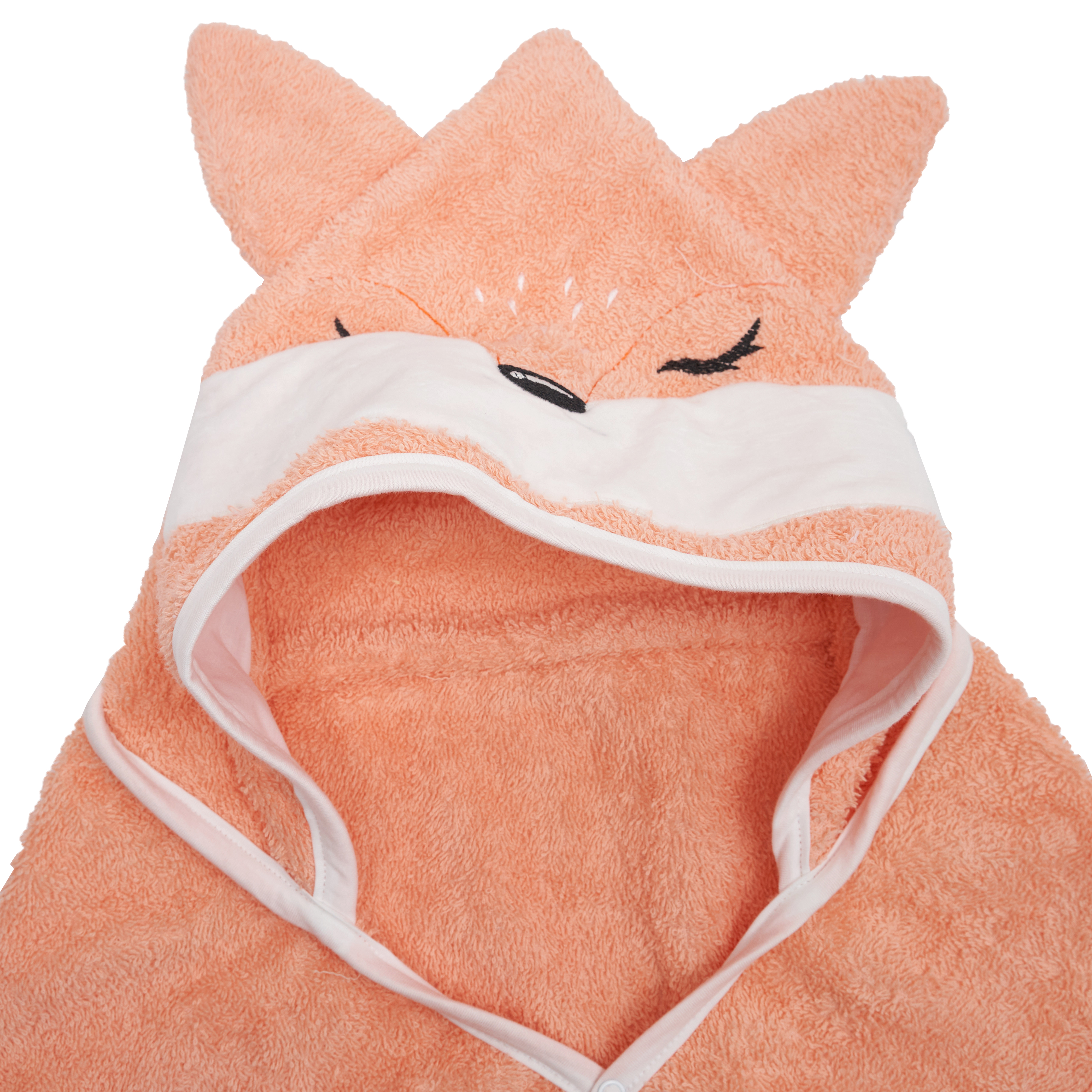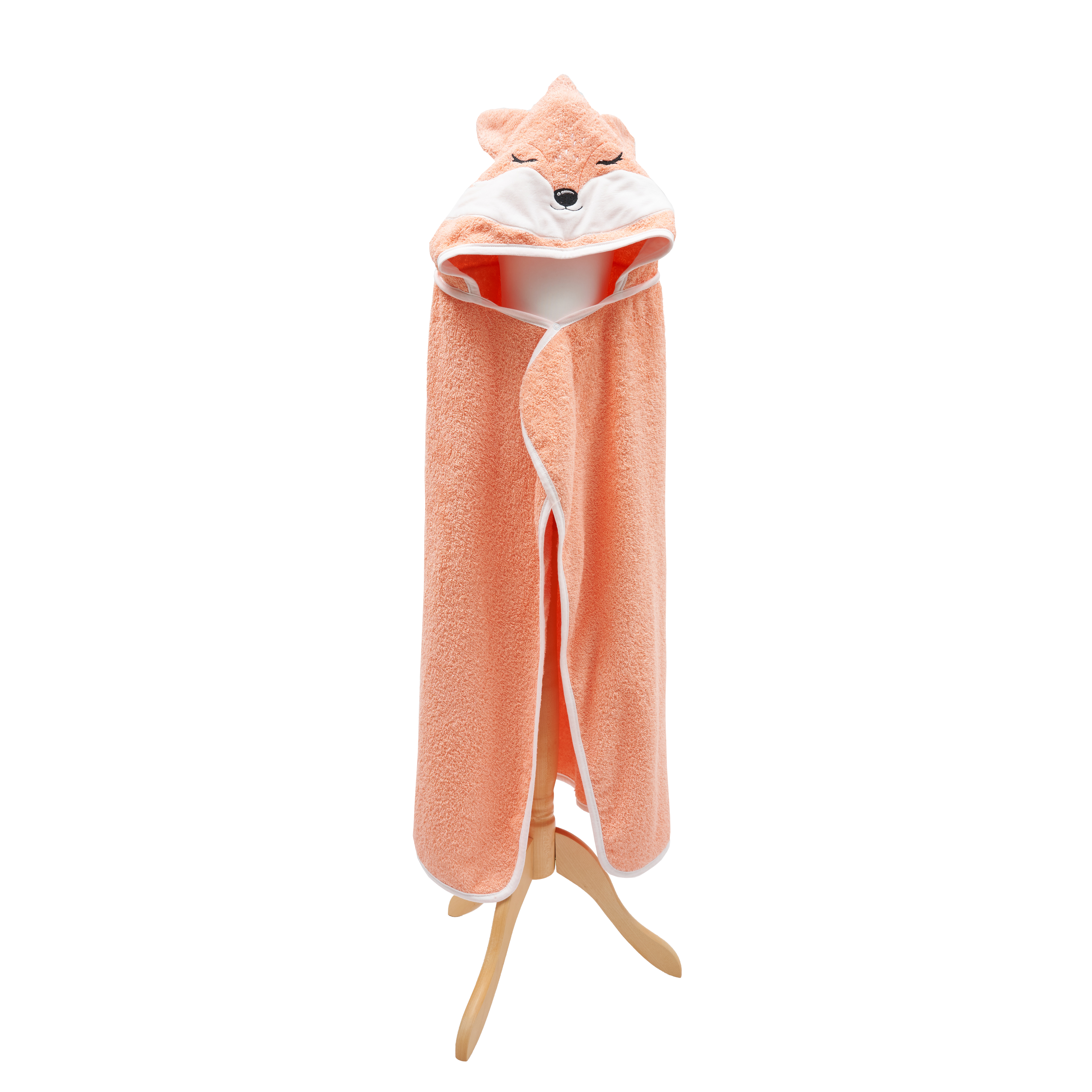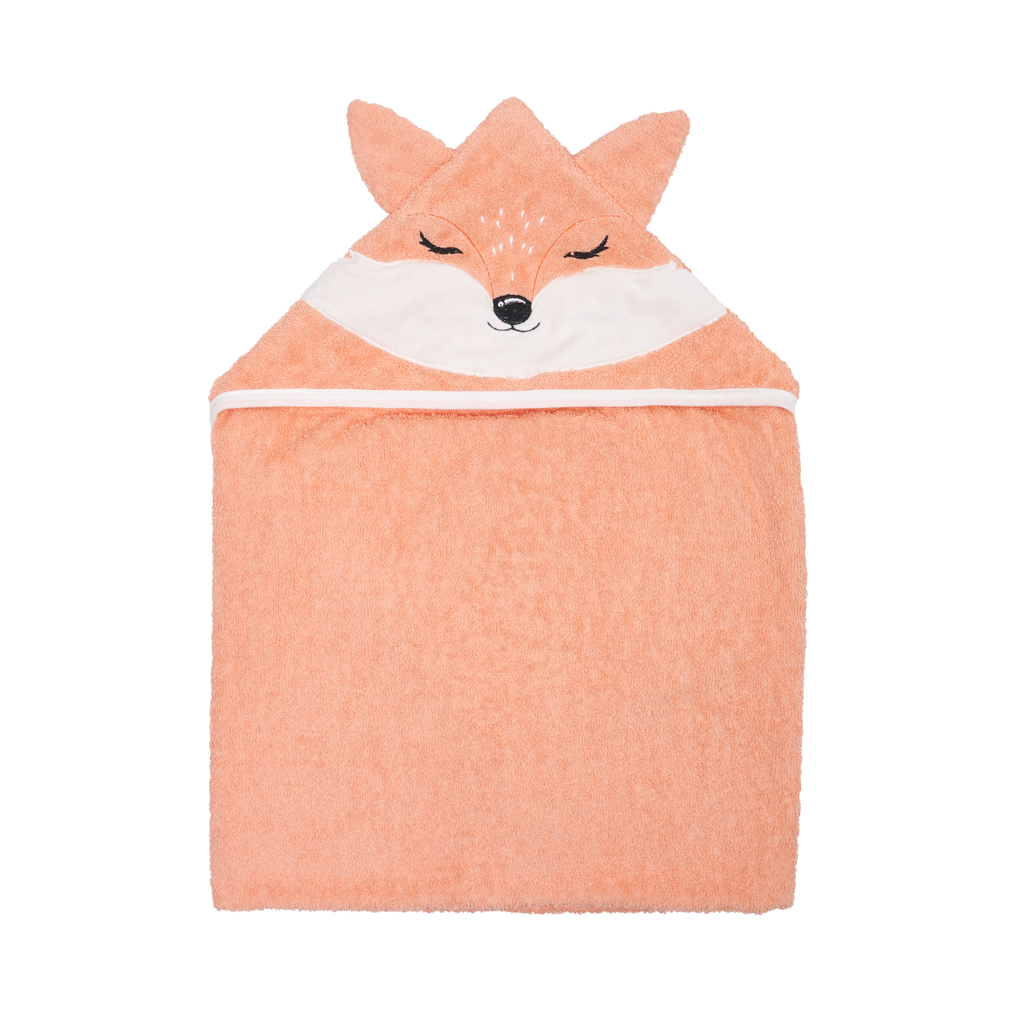 Капюшон в виде уголка украшен милой вышивкой с изображениями животных: лисички, котика, собачки и уточки, что непременно понравится малышу и добавит эмоций во время купания.