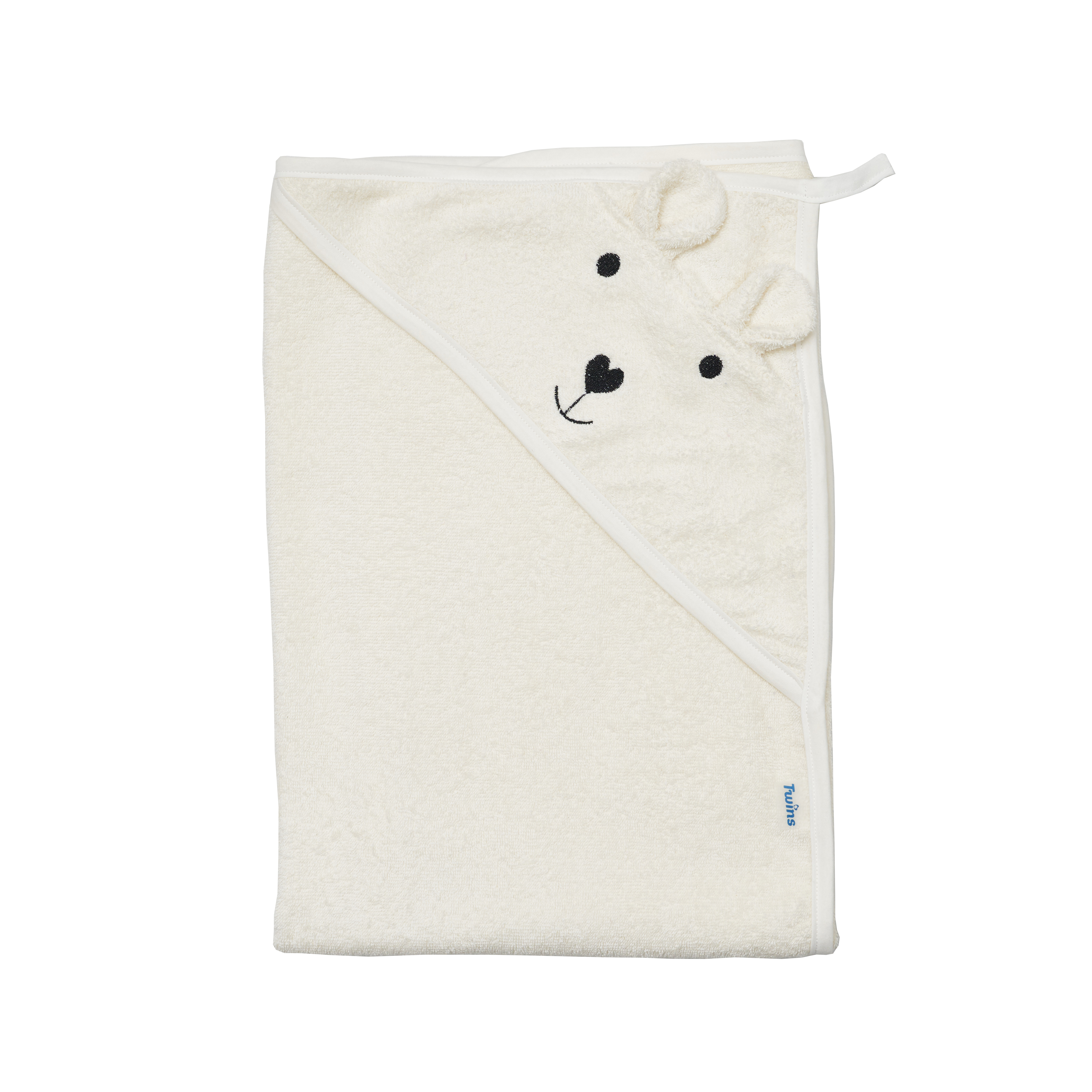 Милый капюшон в форме угла с вышитым личиком мишки и мягкими ушками дарит ребенку комфорт, защищает головку от холода и добавляет положительных эмоций после водных процедур.