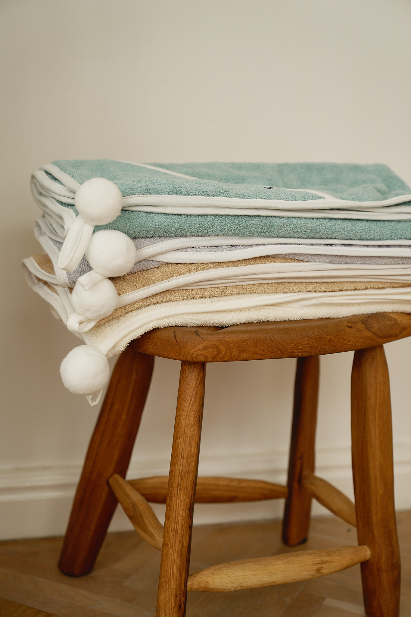 Особое внимание привлекает стильный крупный помпон, украшающий полотенце и придающий ему игривый вид - такой аксессуар точно понравится малышам и станет милой деталью для фото.