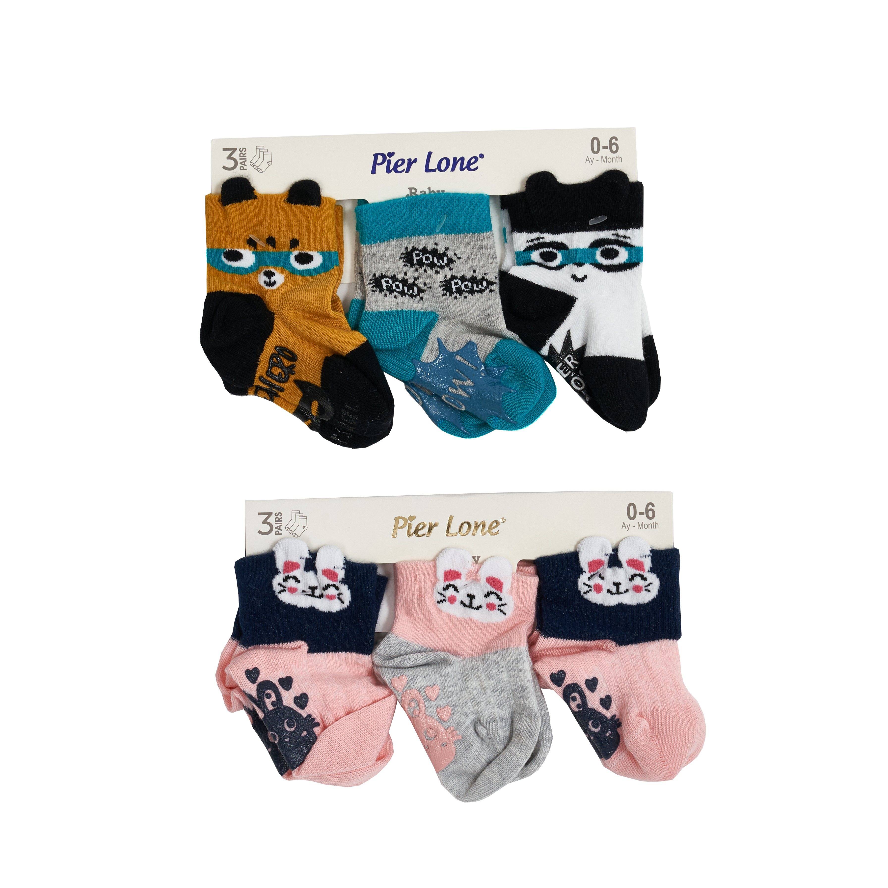 Носочки хлопок 0-6 м 3 шт Декор (прорезиненная подошва) girl, девочка