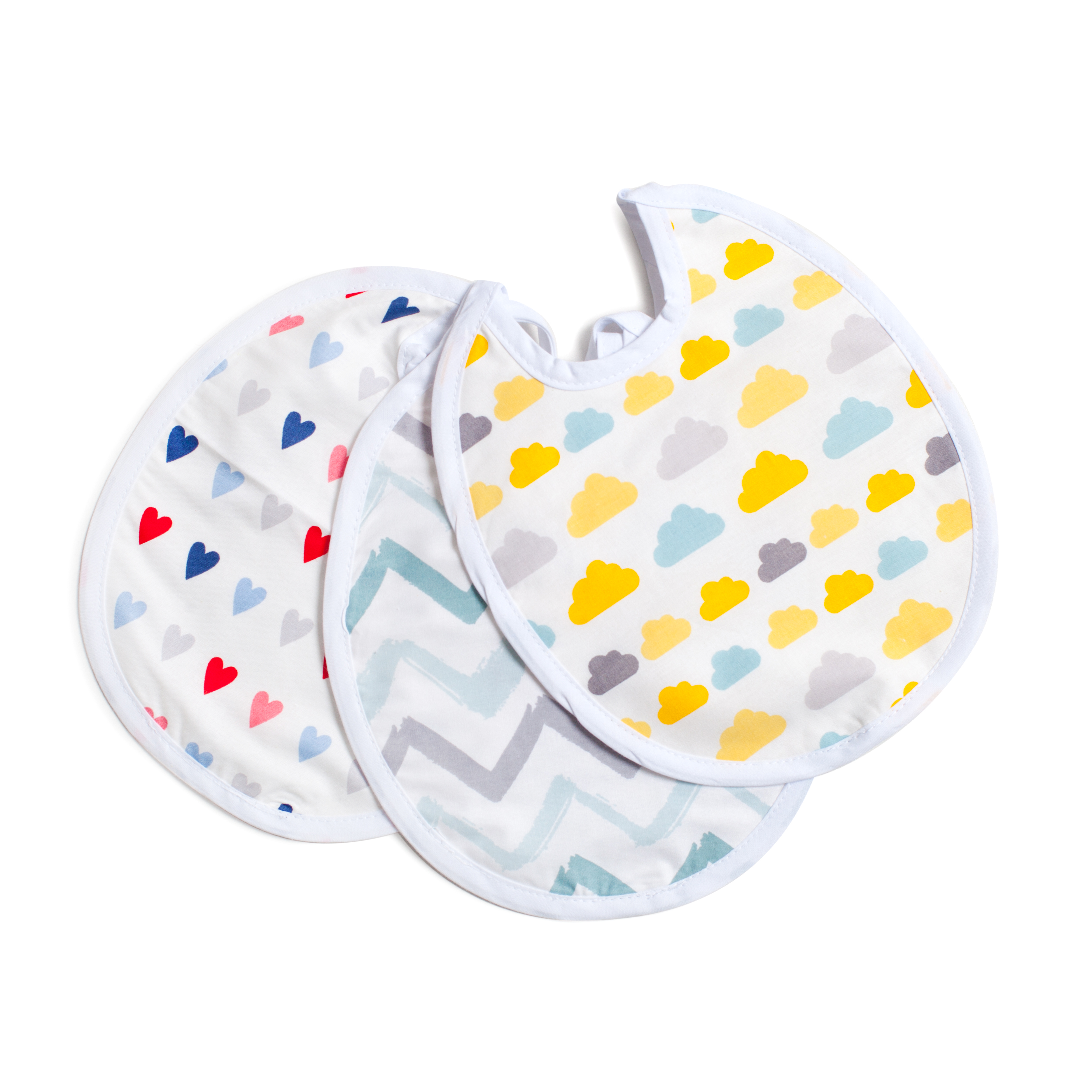 Водонепроницаемые слюнявчики, изготовленные из 100% хлопка. Подходят для детей до 3-х лет. Приятный и милый принт на белом фоне.