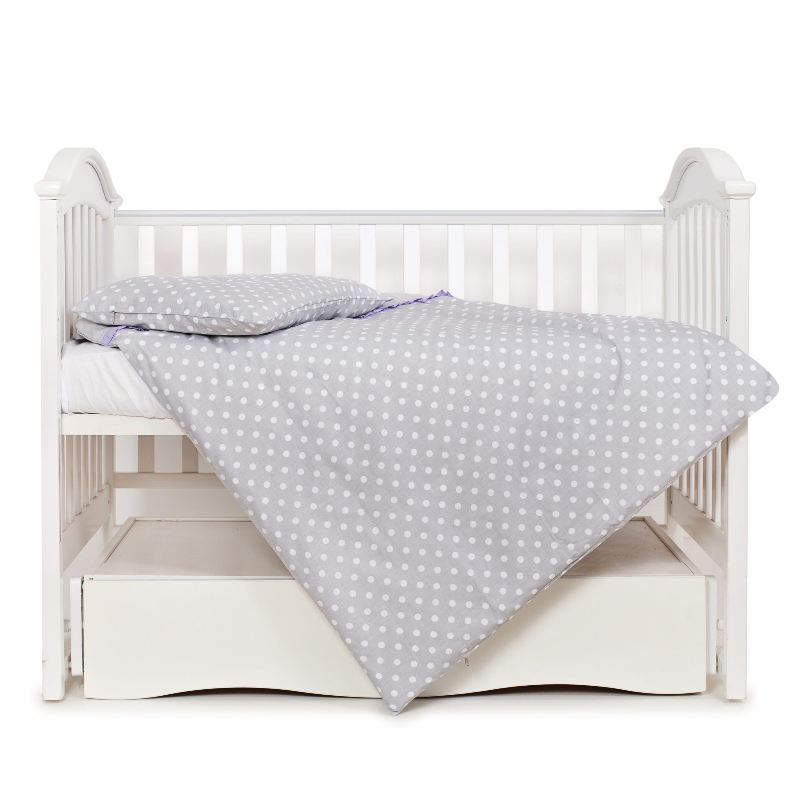 Сменная постель Twins Premium Glamour P-005 – комплект, который подойдет к любому набору постельного белья из серии Twins Premium, Twins Comfort или Twins Evolution. Предлагаемое изделие выполнено в сером цвете, украшен узором в белый горошек и полоску. Может использоваться как основное, в путешествиях и на сменку.
