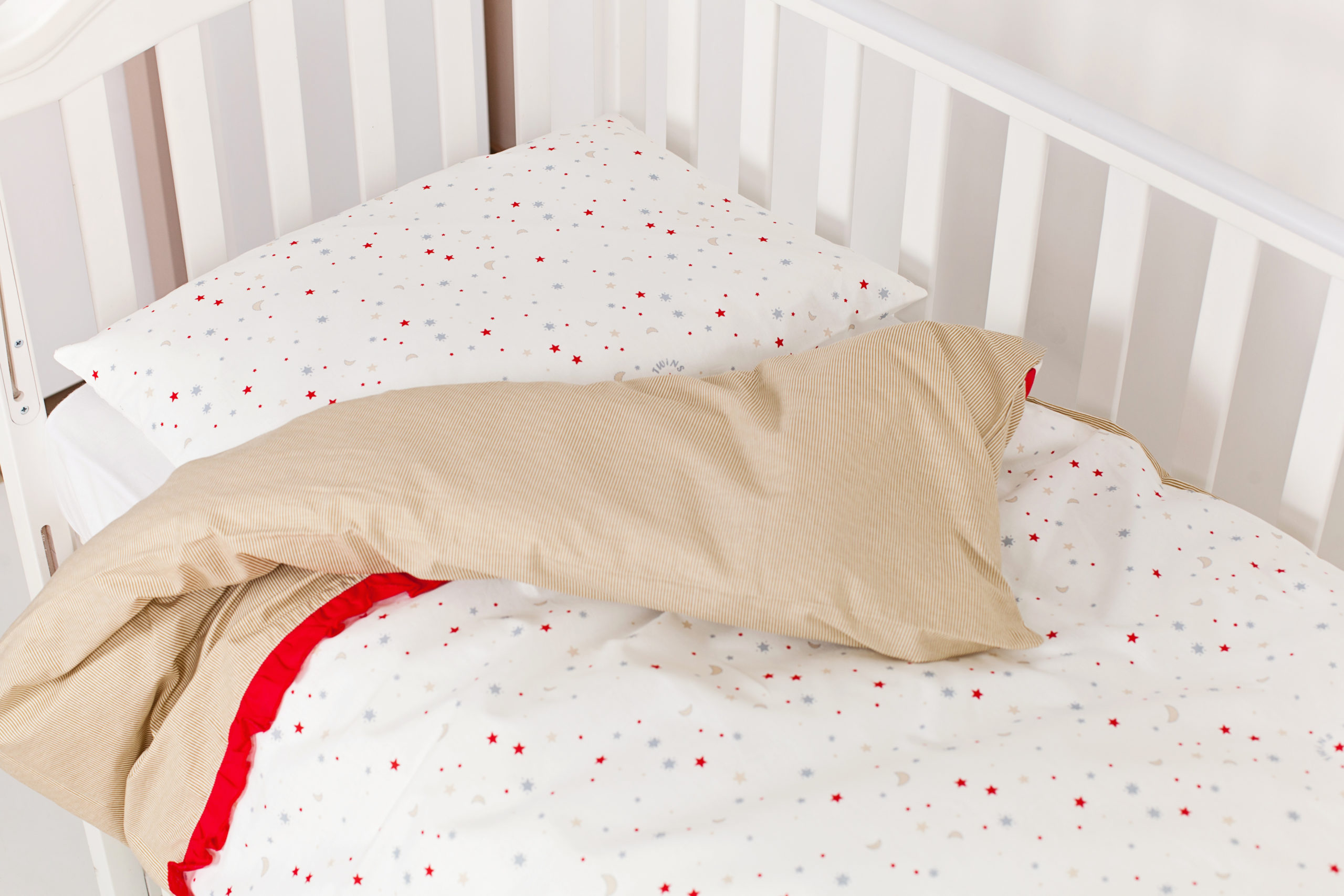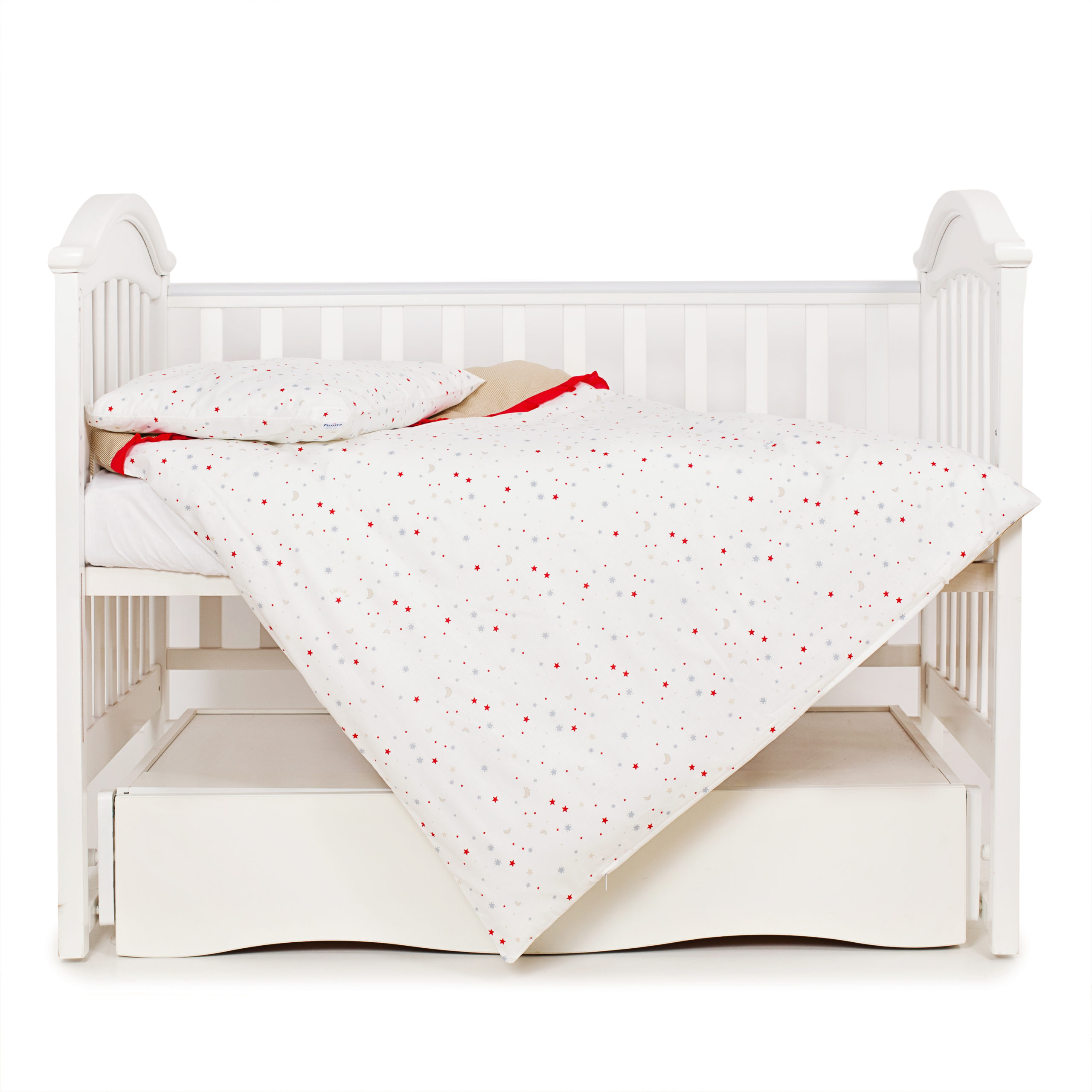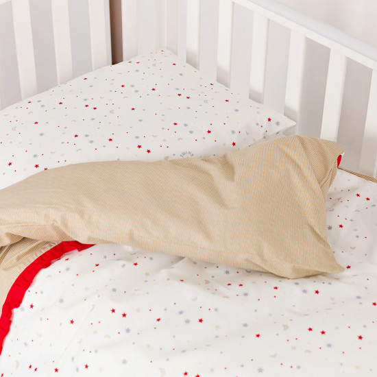 Уверенно отпускайте своего малыша в сонно-звездное путешествие с комплектом детской сменной постельного белья Twins Premium Starlet – комплект, который подойдет к любому набору постельного белья из серии Twins Premium, Twins Comfort или Twins Evolution. Предлагаемое изделие выполнено в белом цвете, украшено орнаментом в серую полоску или же принтом на мотив звездного неба.
