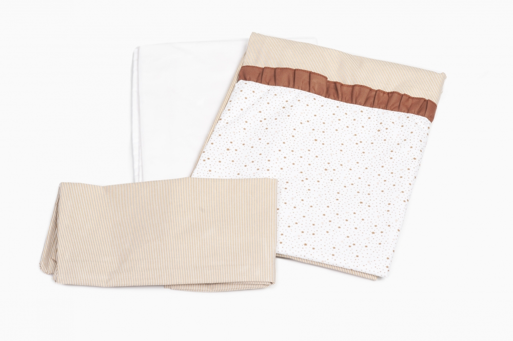 Уверенно отпускайте своего малыша в сонно-звездное путешествие с комплектом детской сменной постельного белья Twins Premium Starlet – комплект, который подойдет к любому набору постельного белья из серии Twins Premium, Twins Comfort или Twins Evolution. Предлагаемое изделие выполнено в белом цвете, украшено орнаментом в серую полоску или же принтом на мотив звездного неба.