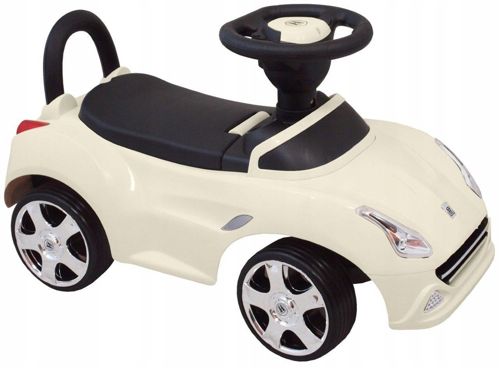 Машинка управляется силой ног ребенка, ребенок отталкивает ноги, автомобиль приходит в движение. В качестве толкателя может использоваться ручка установленная на задней панели. Автомобиль оснащен отсеком для хранения мелких предметов под сиденьем. На рулевом колесе также есть клавиши для освещения и звуковых эффектов. Легко вращающийся руль и ребенок может легко маневрировать.