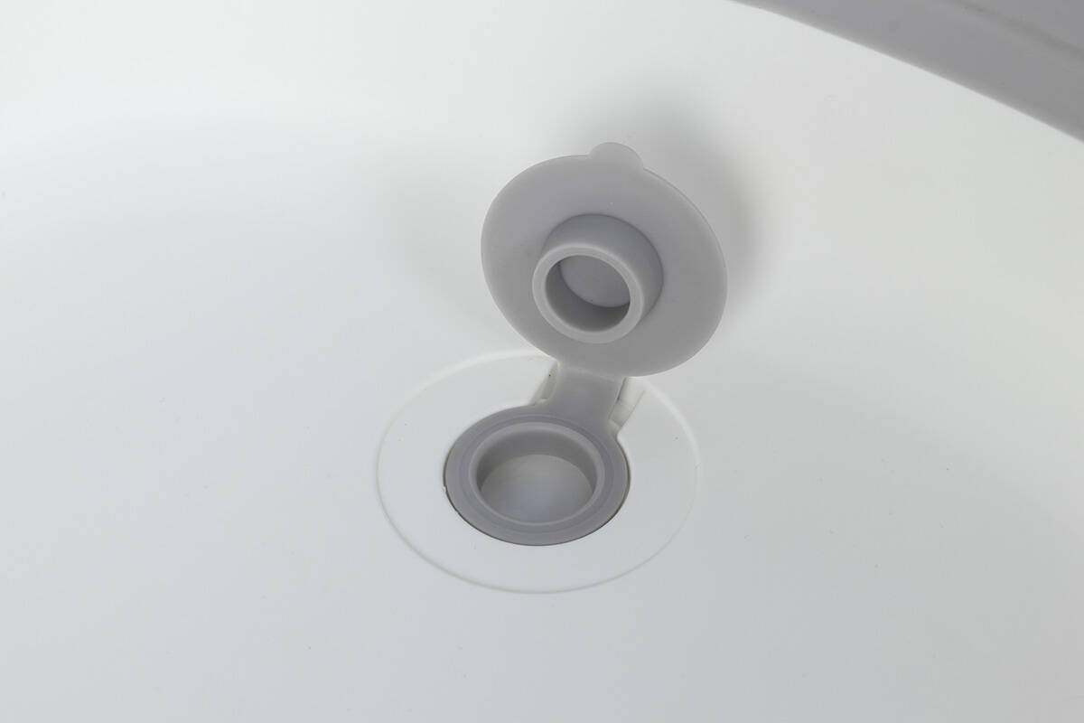 Ванна оборудована сливным отверстием с силиконовой пробкой для легкого слива воды после купания.