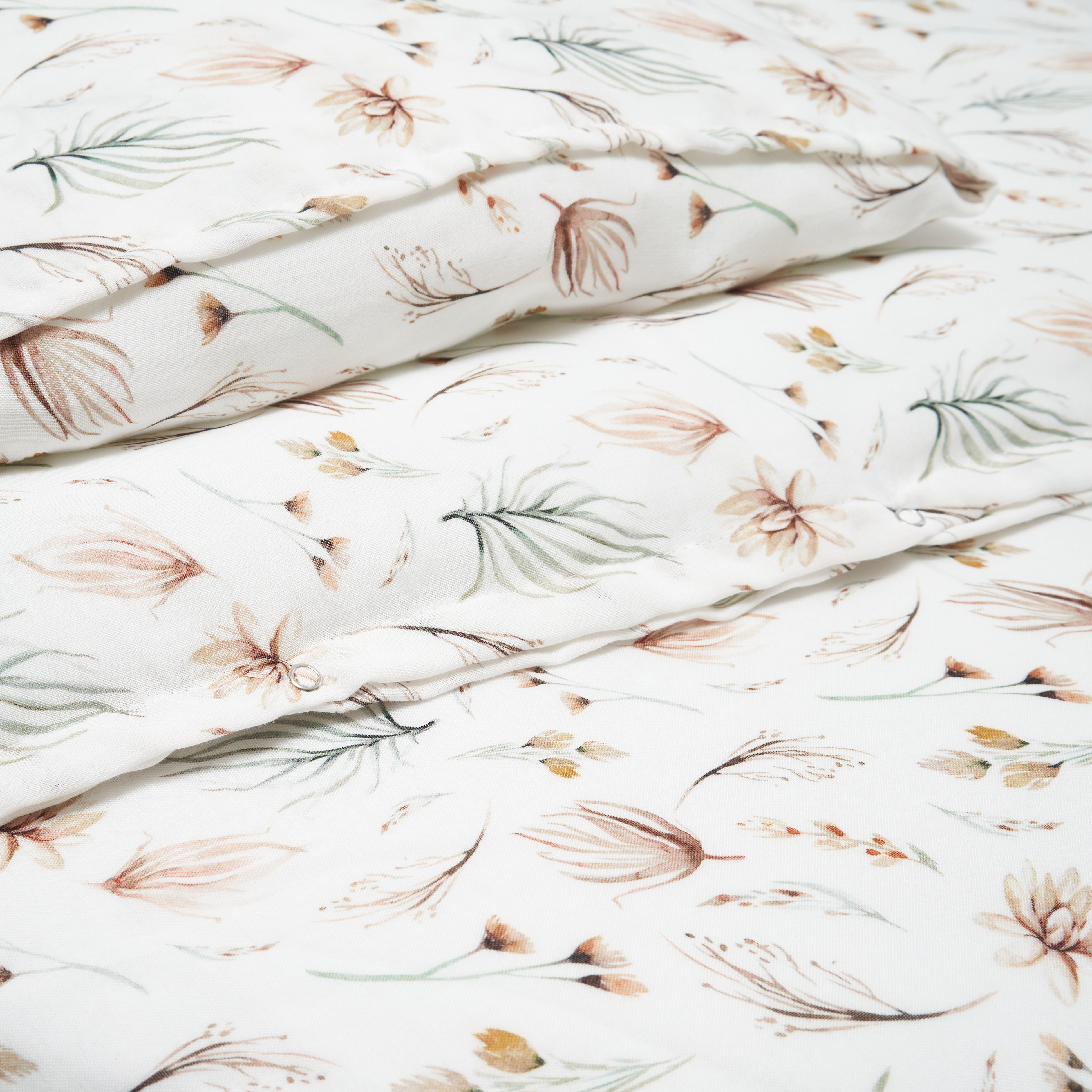Бамбуковая ткань обладает природными антибактериальными свойствами, прекрасно пропускает воздух и регулирует температуру, обеспечивая комфортный сон ребенка в любое время года.