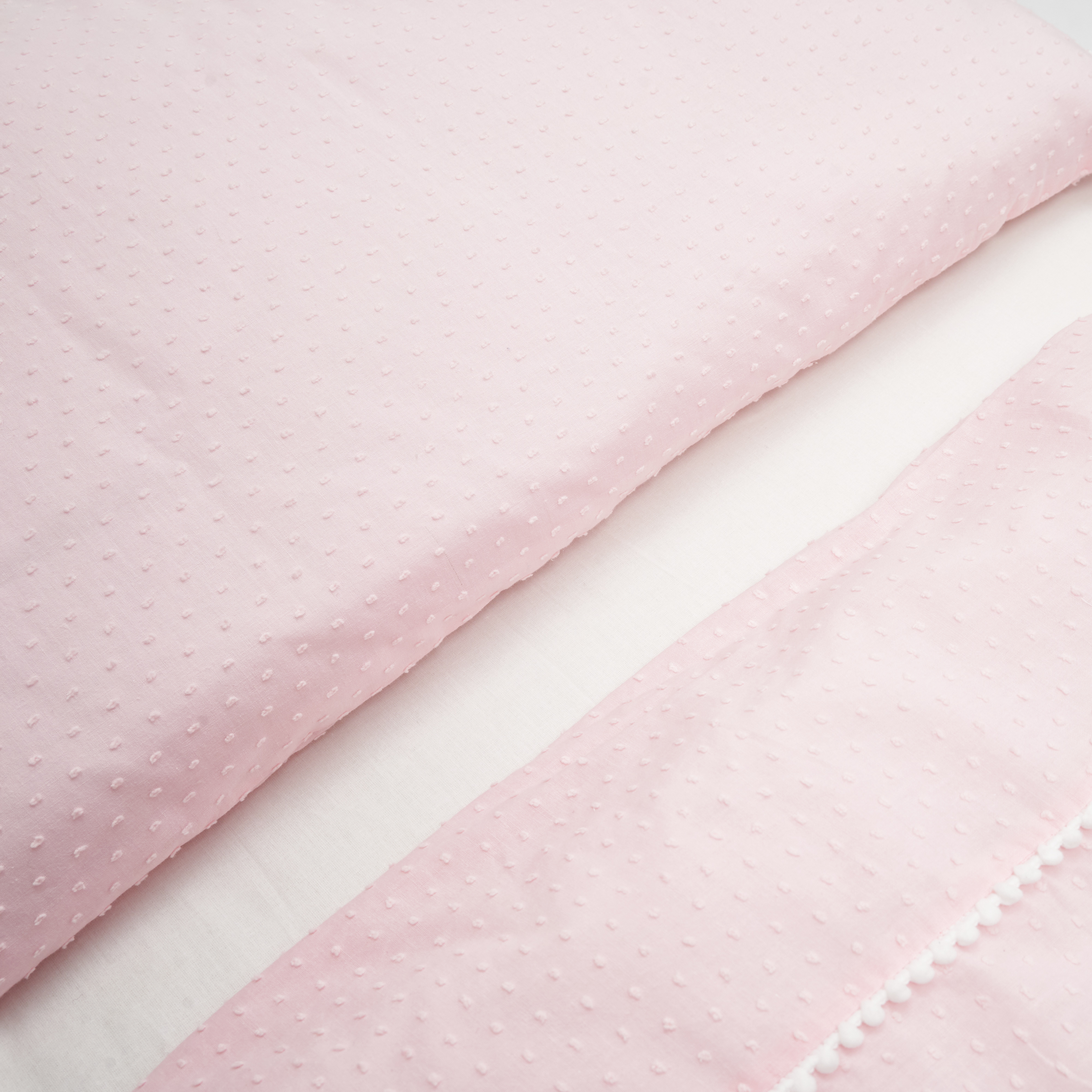 Наволочки: 40×60 см (1 из батиста в горошек 3D, 1 бязевая)
