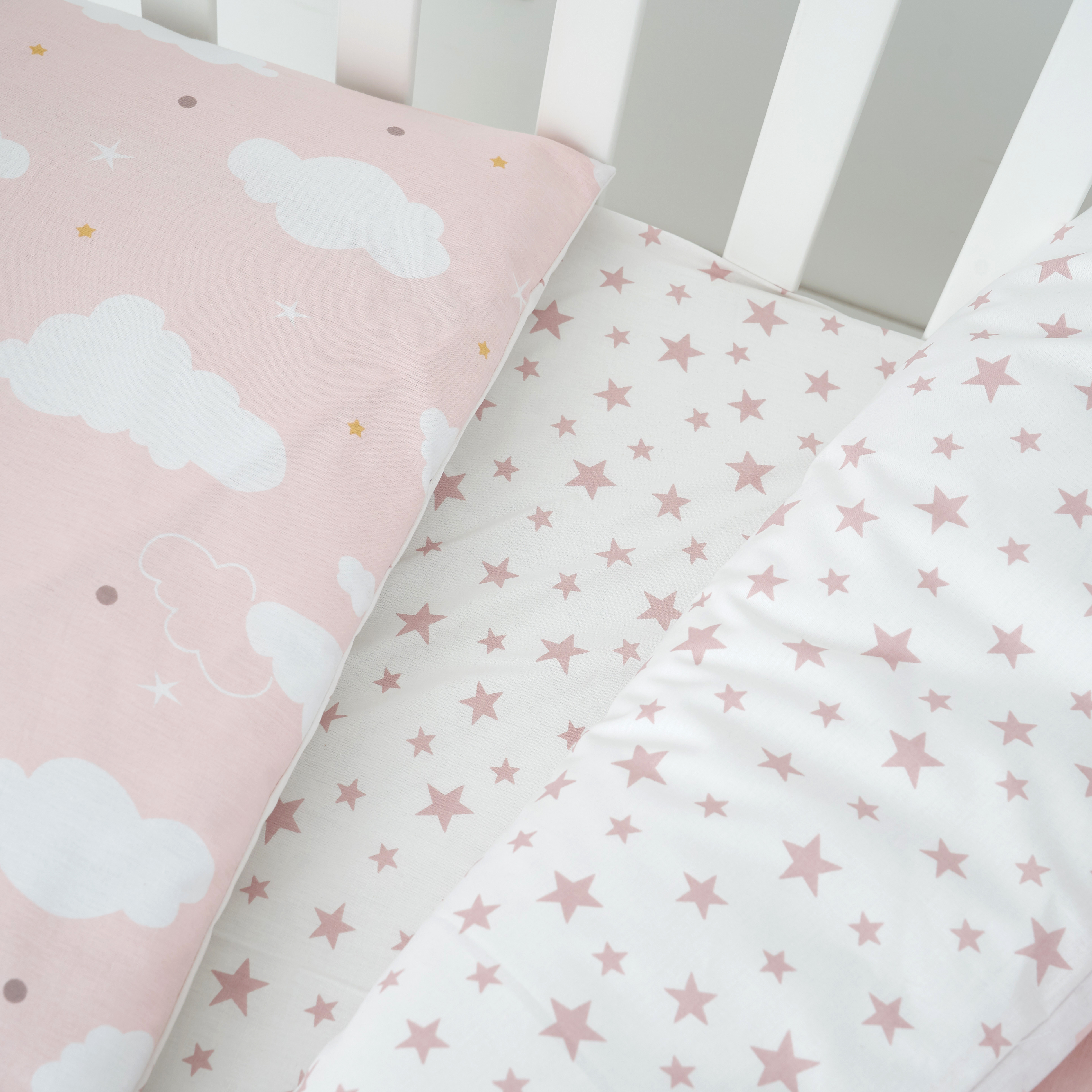 Комплект изготовлен из 100% натурального хлопка (бязь) – мягкой, нежной и влагостойкой ткани, которая бережно заботится о нежной коже малыша.