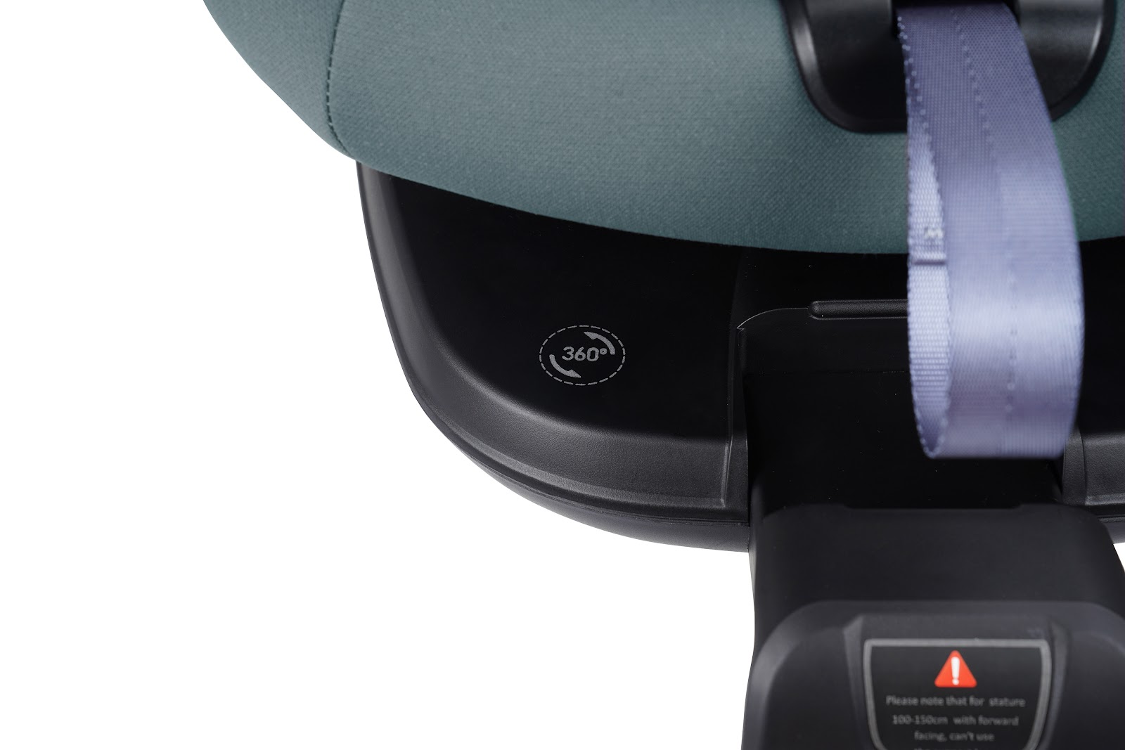 Обертання на 360° – легке встановлення спинкою, обличчям або боком без від’єднання від бази. Два важелі з боків крісла забезпечують зручність повороту з будь-якого боку автомобіля.