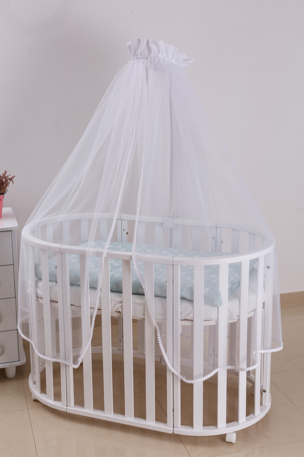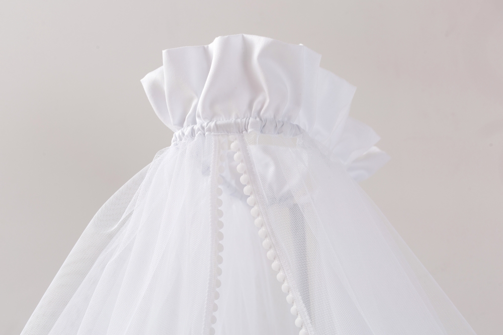 Балдахін Twins Pompon універсальний виготовлений з тонкої сітки і ніжної вуалі, яка огортає ліжечко малюка, створює казкову атмосферу, навіває сон. Балдахін ідеально підійде до будь-якого ліжечка, а пастельні кольори підходять до інтер'єру, виглядають естетично і приємно.