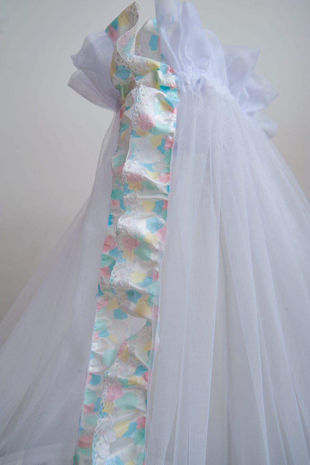 Балдахін Twins універсальний iLove виготовлений з тонкого іспанського мережива і ніжної вуалі, яка огортає ліжечко малюка, створює казкову атмосферу, навіває сон. Балдахін ідеально підійде до будь-якого ліжечка, а пастельні кольори вписуються в інтер'єр, виглядають естетично і приємно.