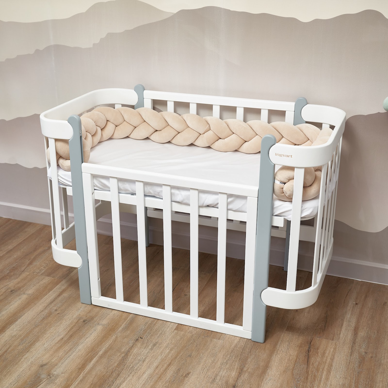 Завдяки стильному дизайну у формі коси бампер гармонійно доповнить інтер’єр дитячої кімнати, а його ніжна текстура подарує малюку затишок і комфорт.