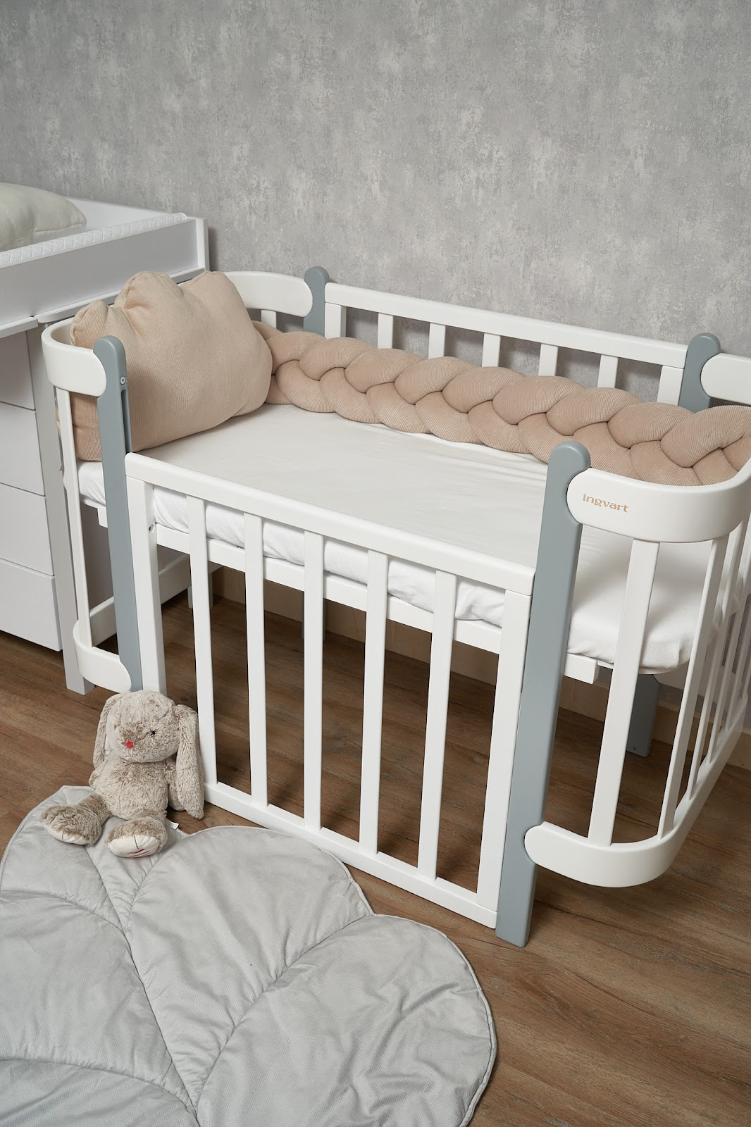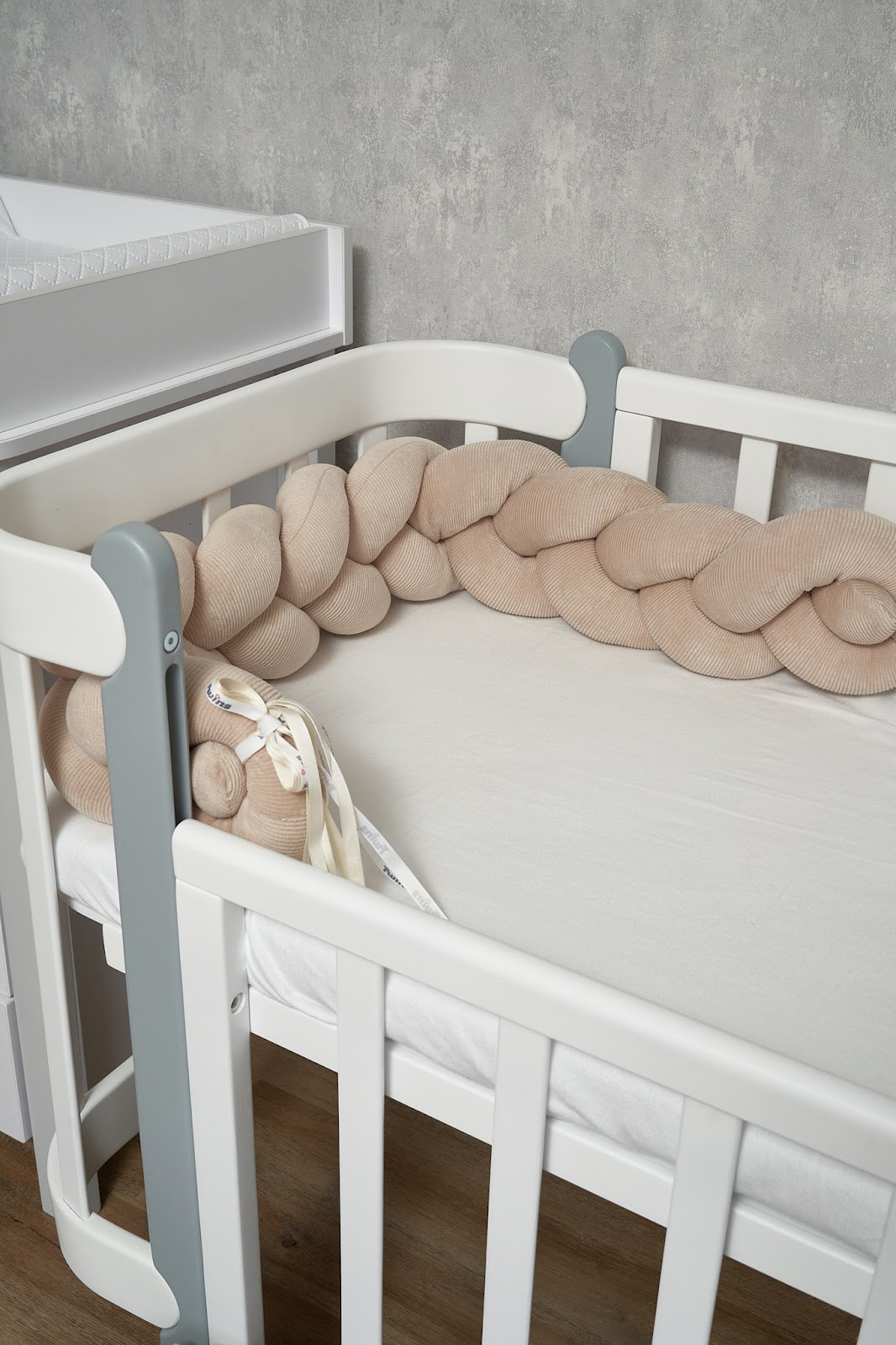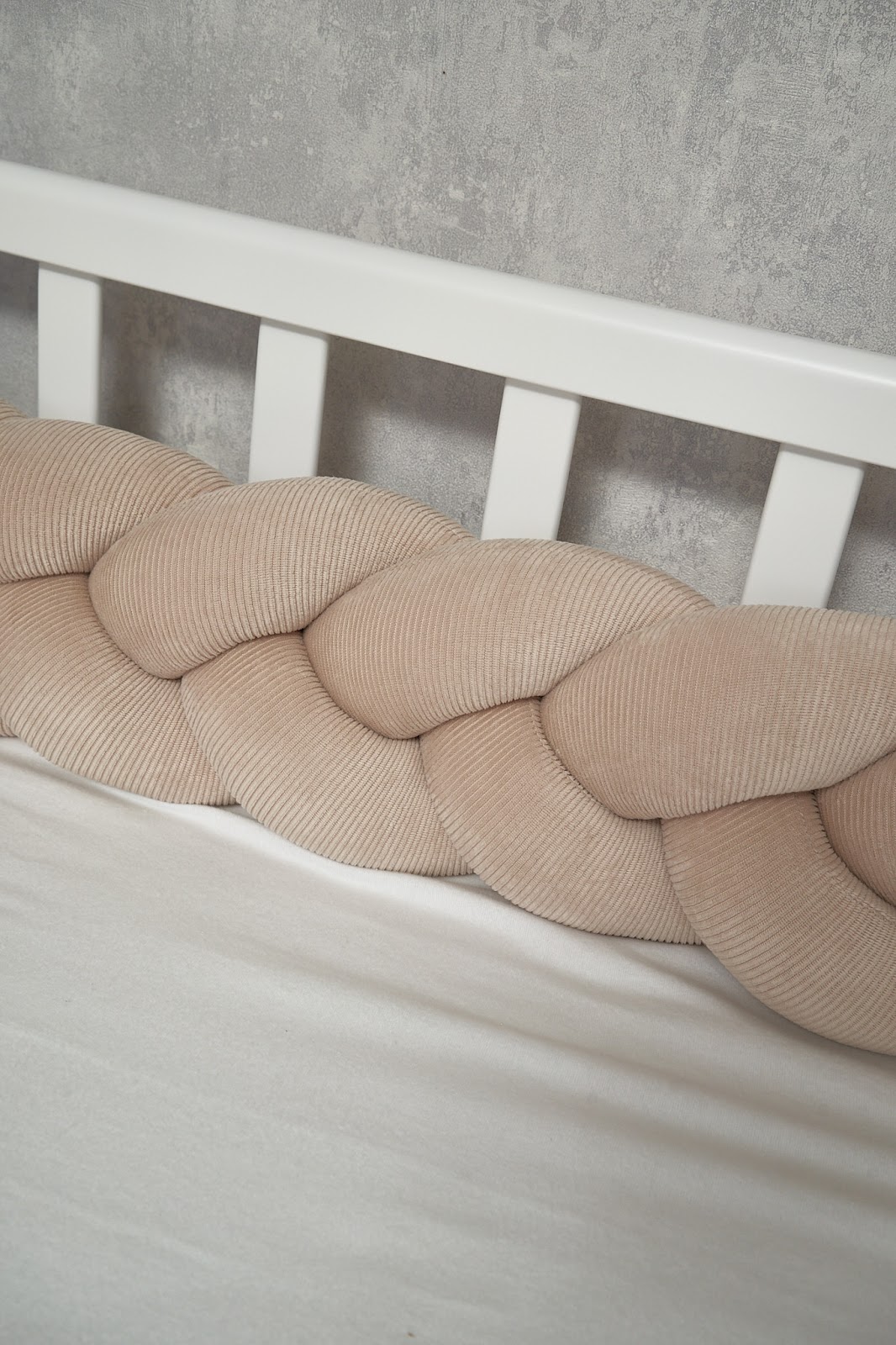 Завдяки стильному дизайну у формі коси бампер гармонійно доповнить інтер’єр дитячої кімнати, а його ніжна текстура подарує малюку затишок і комфорт.
