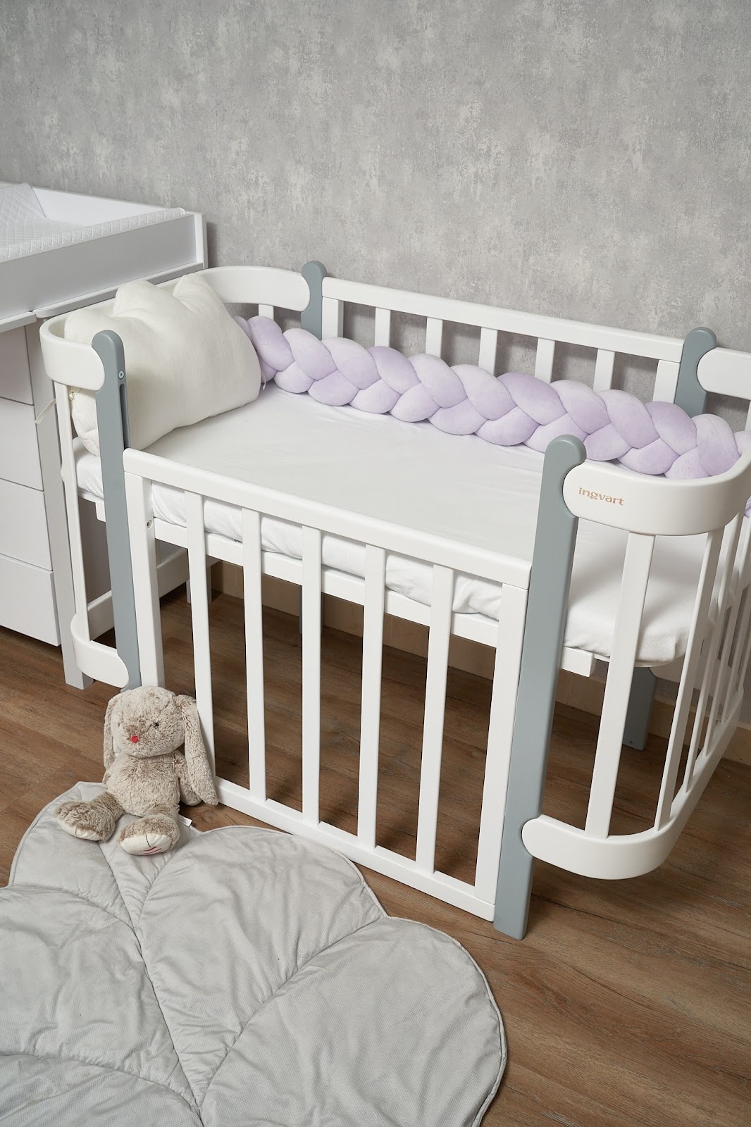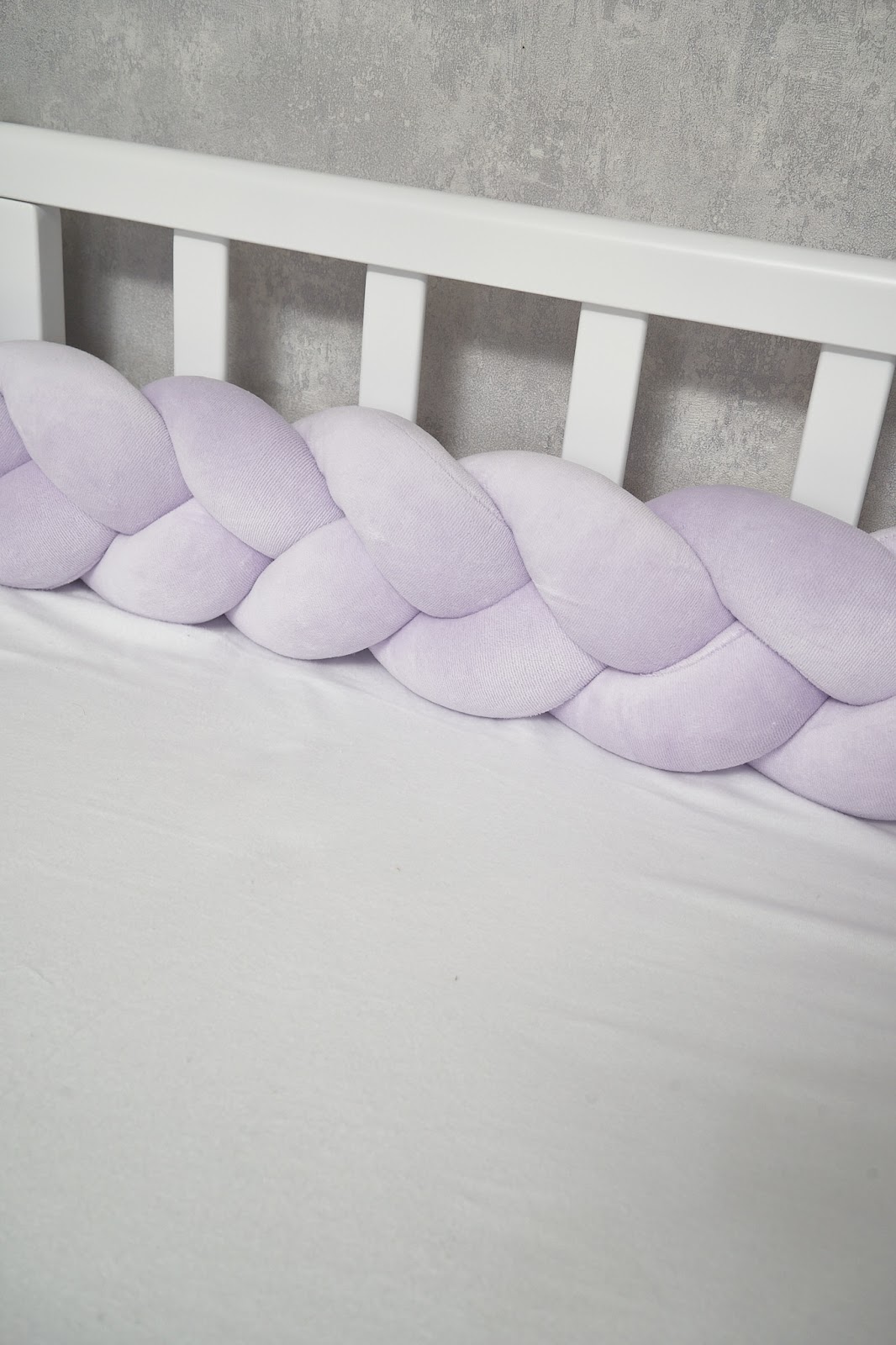 Завдяки стильному дизайну у формі коси бампер гармонійно доповнить інтер’єр дитячої кімнати, а його ніжна текстура подарує малюку затишок і комфорт.