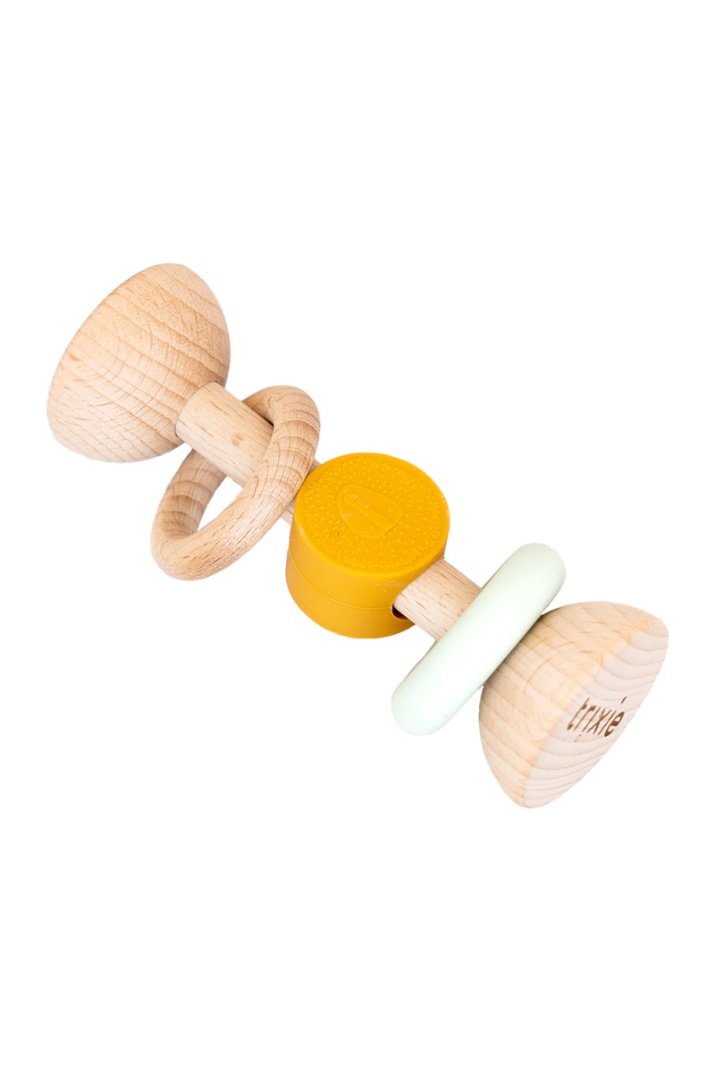 Завдяки м'якому силікону та гладкій буковій деревині кожен новий друг пропонує різноманітні сенсорні стимули, а закруглені краї та веселі кольори привертають увагу малюка.