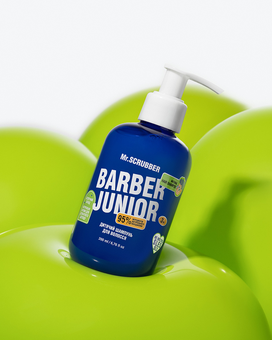 Дитячий шампунь для волосся Barber Junior надзвичайно делітно очищує волосся, не пересушує і не травмує ніжну структуру, запобігає плутанню, зміцнює волосинку.