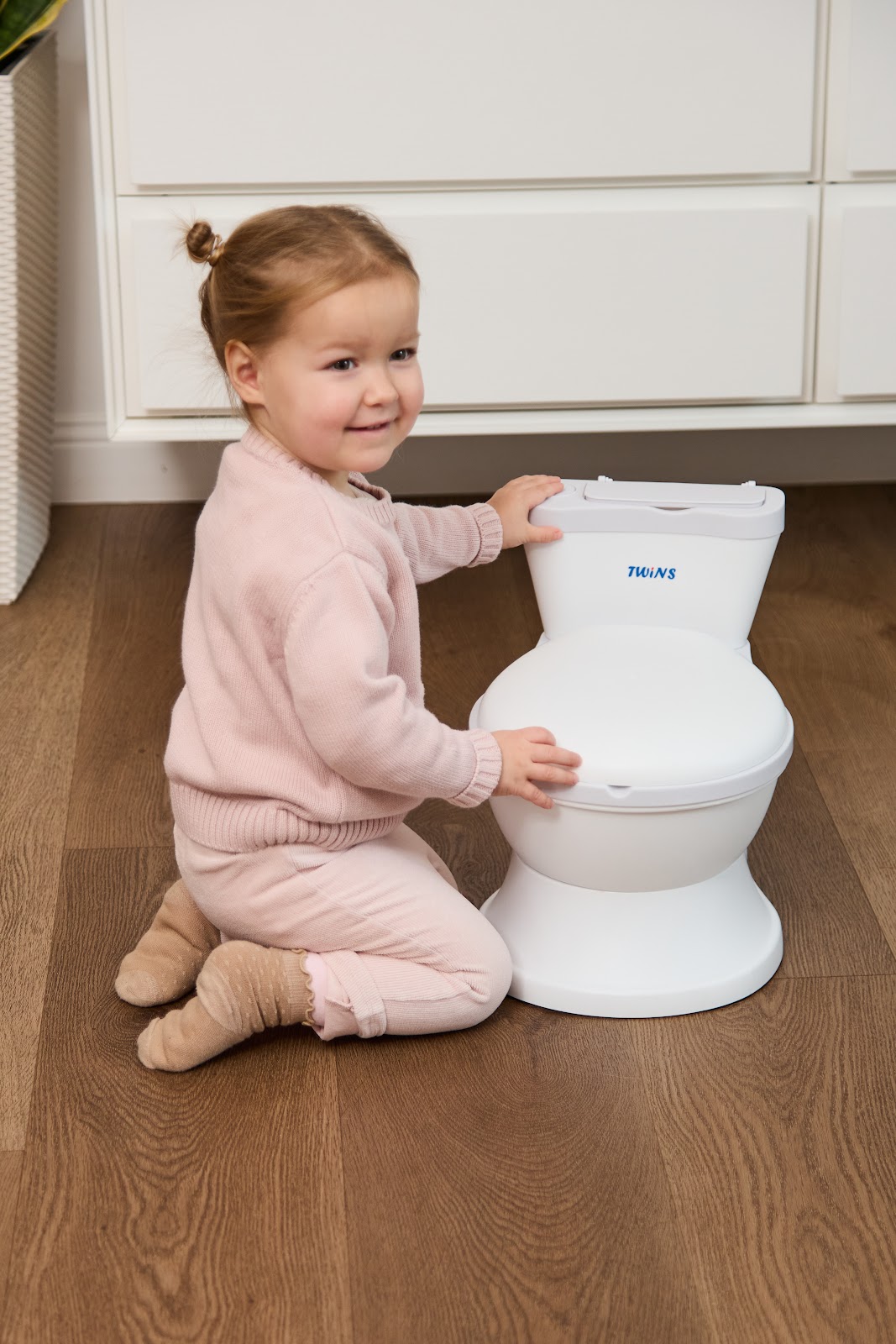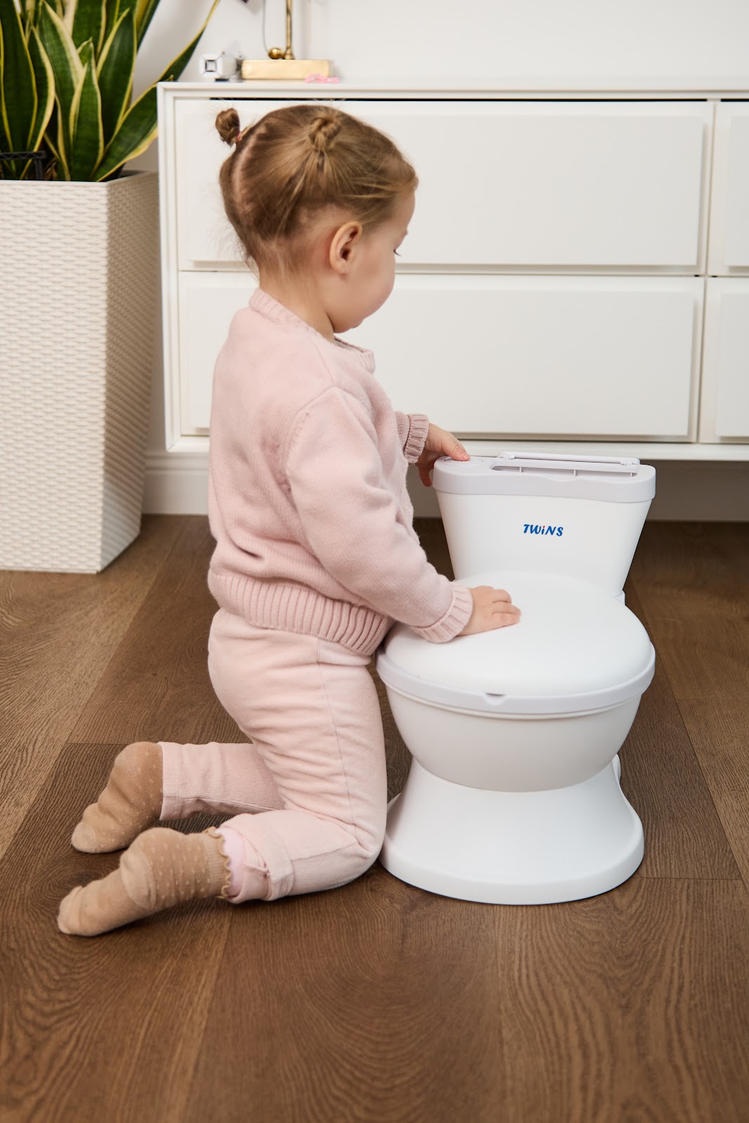 Дитячий горщик Twins Туалет допомагає зробити перехід від підгузків до самостійного користування горщиком легким, цікавим і без стресу.
