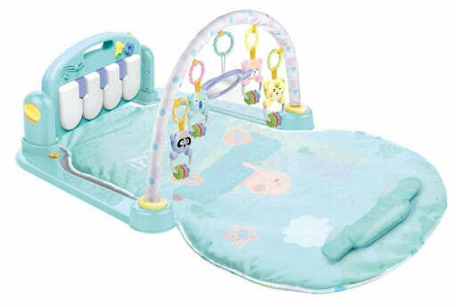 Розвиваючий музичний коврик для малюка не даст Вам і Вашому маленькому солнишку скачати. Розвиваючий коврик – багатофункціональна іграшка, яка підходить навіть новонародженому! Музична панель піаніно складається з 4-х клавіш, відтворюючих ноти при нажаті на кожну клавішу окремо, а також двох кнопок, які відтворюють сприятливі заспокоючі мелодії. З допомогою червоної кнопки у верхній правій частині піаніно - Ви можете легко регулювати гучність звуку. М'яка яскрава підстилка кріпиться до бірюзової дуги за допомогою спеціальних тканинних петель, що захищає від постійного вискальзування м'якого коврику з-під підвіски. Так само у відмінність від інших моделей дитячих развиваючих ковриков, коврик Baby Mix Піаніно приємно світиться в темноті, а значить допоможе люблячим мамочкам в укладанні малюка на сон.