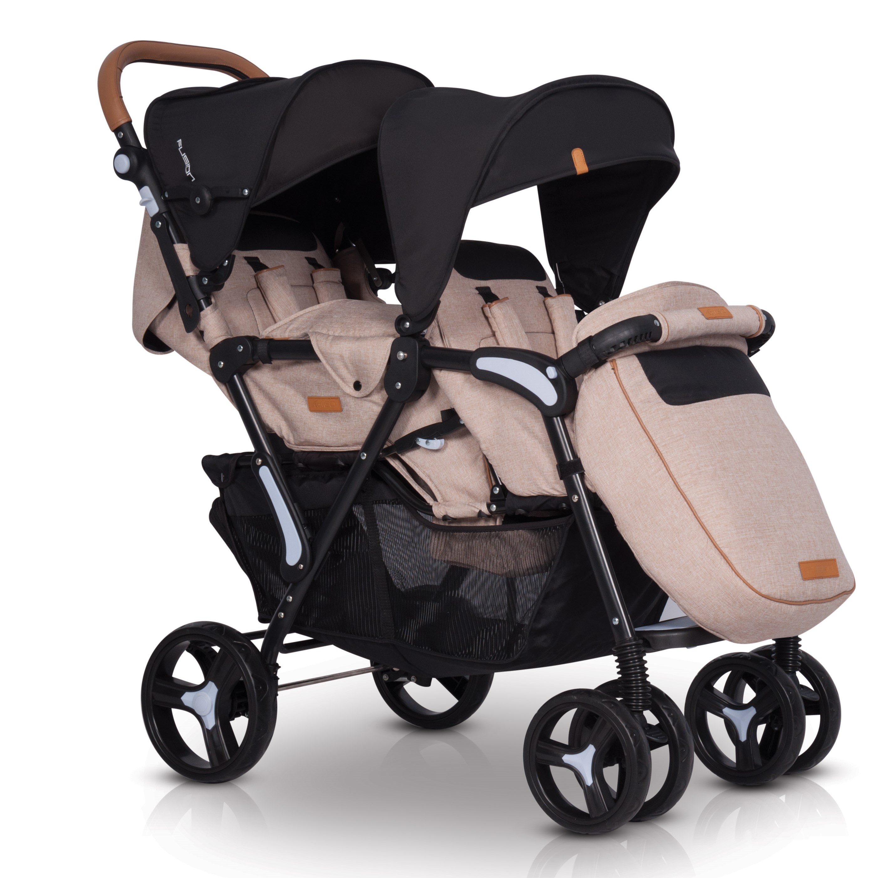 Компактність, легкість і практичність. Цими якостями вас потішить коляска EasyGo Fusion Duo для близнят, виготовлена відповідно до європейського стандарту безпеки EN 1888.