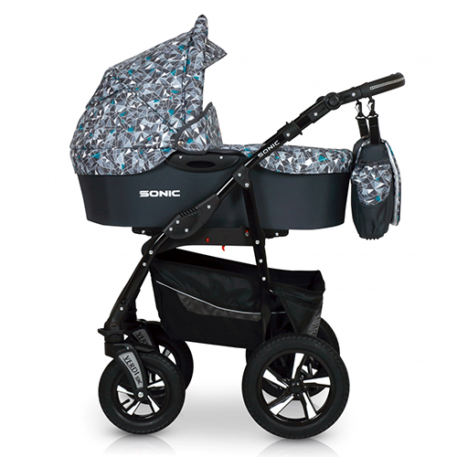 У комплекті з коляскою Verdi Sonic йде практична та зручна сумка. У нижній частині розташовуються гумові підкладки щоб сумку можна було поставити на тверде або брудне покриття і при цьому вона залишилася чистою. Виконана сумка з вологовідштовхувального матеріалу, з боків 2 кишені для пляшок, що теж дуже зручно. У комплекті йдуть дощовик, москітна сітка і перехідники, для того щоб встановити на коляску автолюльку.