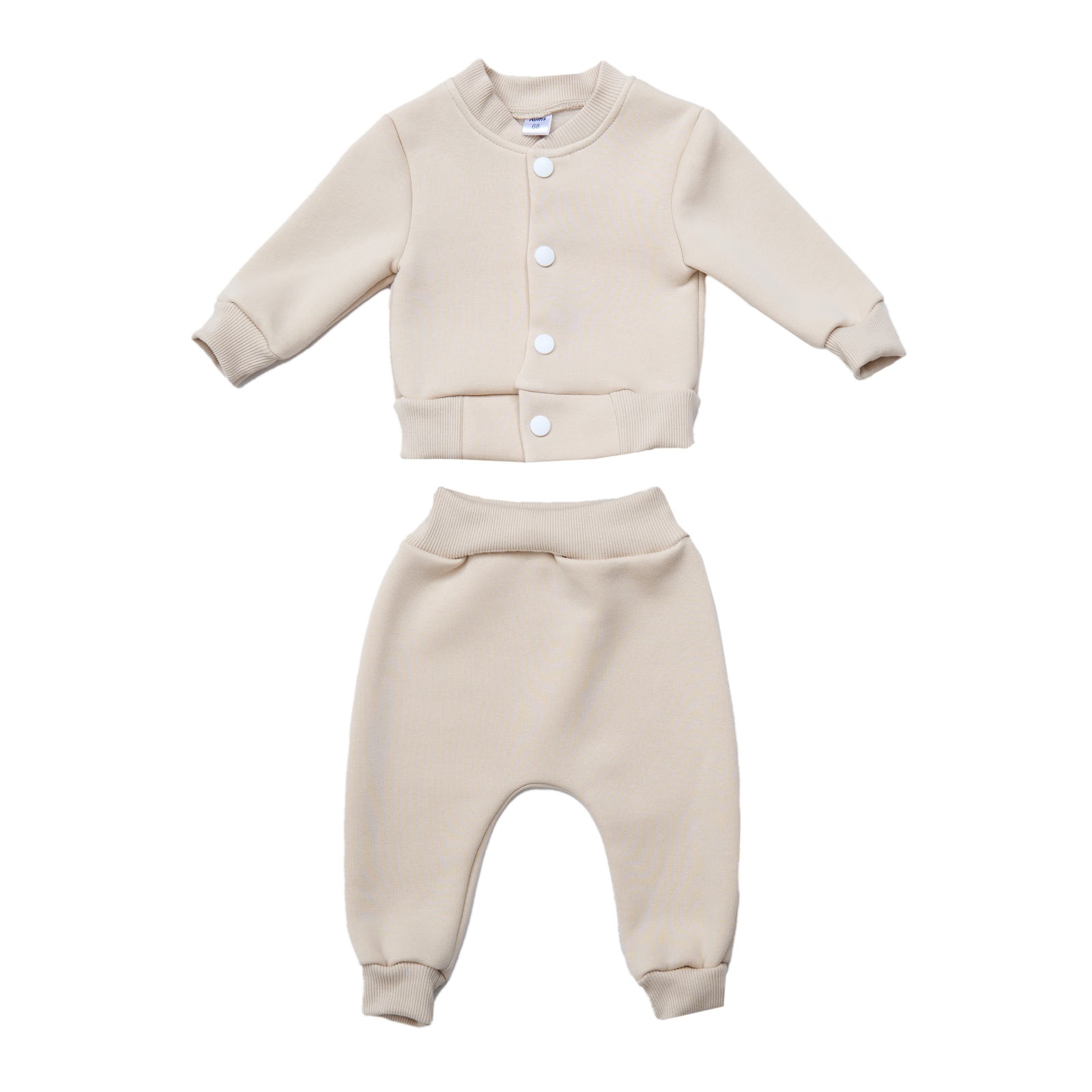 Костюм складається з бомбера на ґудзиках та утеплених штанців з еластичним поясом.
