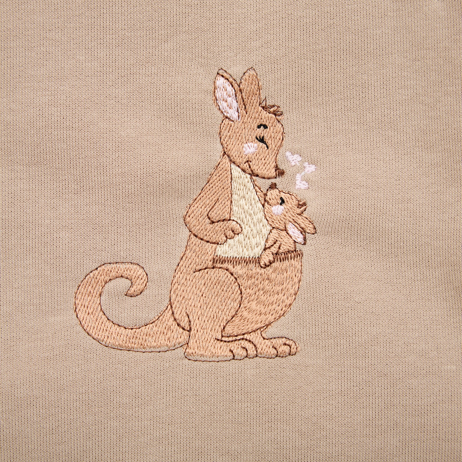 Худі прикрашене акуратною тематичною вишивкою у вигляді тварин сафарі, що додає образу яскравості й особливого шарму.
