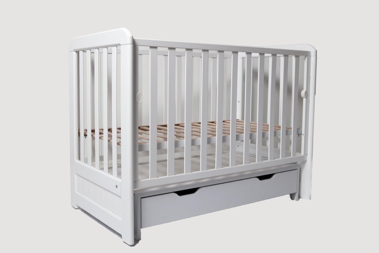 • Зручність для батьків – опускна стінка та шухляда для речей роблять догляд простішим