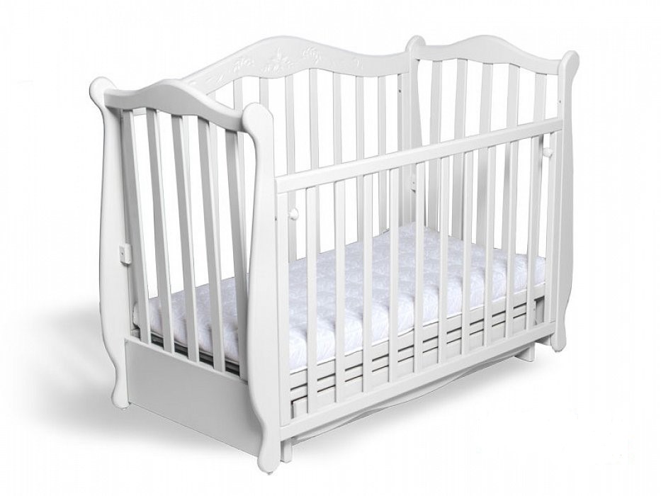 Дитяче ліжечко-диванчик «Жасмин» призначене для дітей від 0 до 4 років. Воно обладнане маятниковим механізмом гойдання. Маятниковий механізм робить гойдання в ліжечку максимально схожим на заколисування дитини на руках у мами. У ліжечку присутній стопор гойдання. Крім того, ліжечко можна встановити на ніжках без використання маятникового механізму. Дитяче ліжечко «Жасмин» зроблене з натурального дерева (вільха). Днище виконано з дерев'яних ортопедичних ламелей і має два рівні висоти. Це оптимальна основа для формування незміцнілого дитячого хребта. Розмір матраца складає 120 * 60 см. Матрац в комплект не входить. Бокова стінка фіксується на двох рівнях висоти. Ви зможете відрегулювати висоту бортів так, щоб дитина не могла перелазити через них. Бокова стінка знімається. В такому випадку, ліжечко може бути використана в якості дивана для вашої дитини до чотирьох років. Коли дитина починає активно грати в ліжечку, дуже велике значення має відстань між бічними рейками, а також їх форма. Після ретельних досліджень, в дитячому ліжечку «Жасмин» рейки розташовані на такій відстані один від одного, яка виключає будь-яку небезпеку для вашої дитини. Планки зроблені без гострих кромок. Вони досить міцні щоб витримати активне навантаження під час ігор дитини в ліжечку. Всі деталі, з яких складається ліжечко, покриті нетоксичним лаком, який не викликає алергії. Дитяче ліжко «Жасмин» комплектується висувним ящиком для білизни або дитячих іграшок. Всі вироблені нами ліжечка відповідають вимогам ДСТУ.