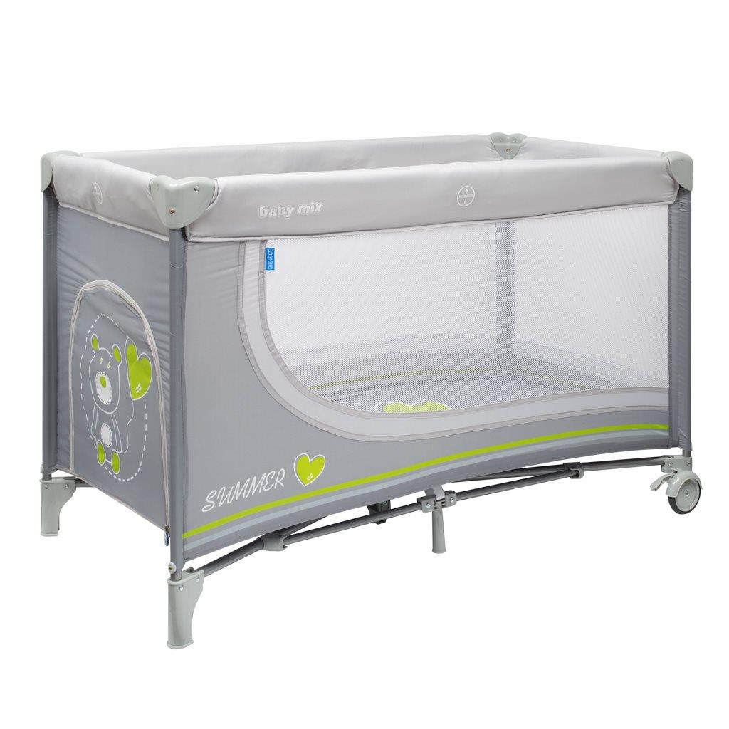 Однорівневе дитяче ліжечко Baby Mix. Завдяки складаній конструкції його можна використовувати як переносне ліжко, призначене для поїздок, так і домашній манеж.
