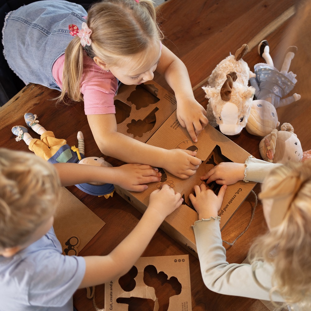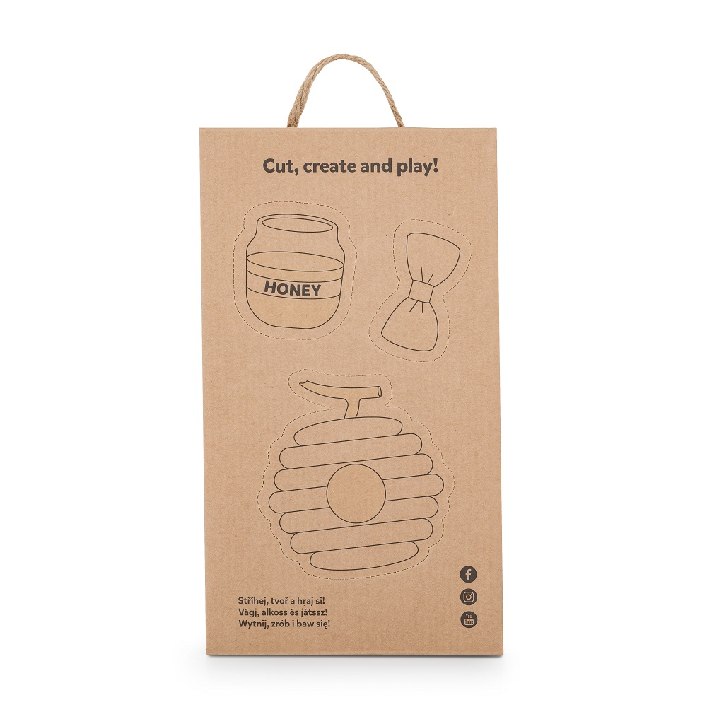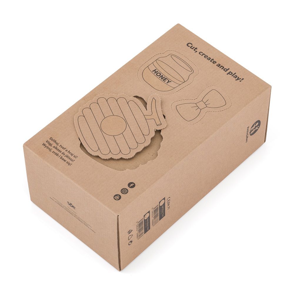 Екологічна коробка з перфорацією перетворюється на ігровий будиночок для ведмедика або аксесуари для творчих розваг.
