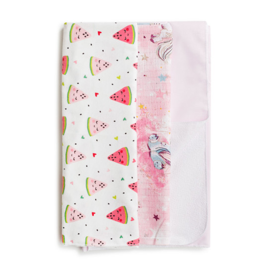 У комплект входять три пелюшки, кожна з яких має свої особливості та виконує важливі функції у повсякденному догляді за дитиною.