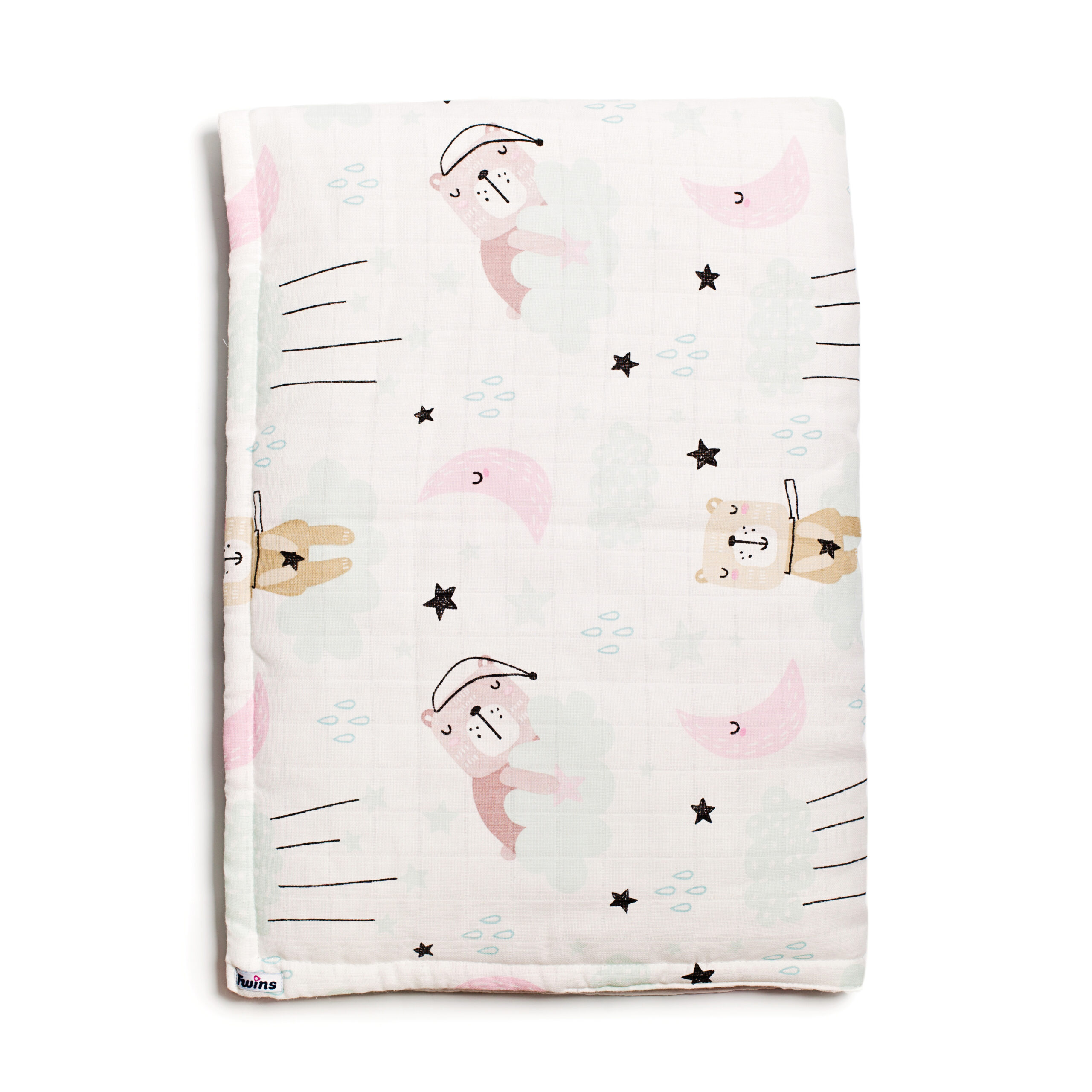 Плед Twins мусліновий утеплений ідеально зігріє малюка під час прогулянки прохолодними осінніми вечорами.