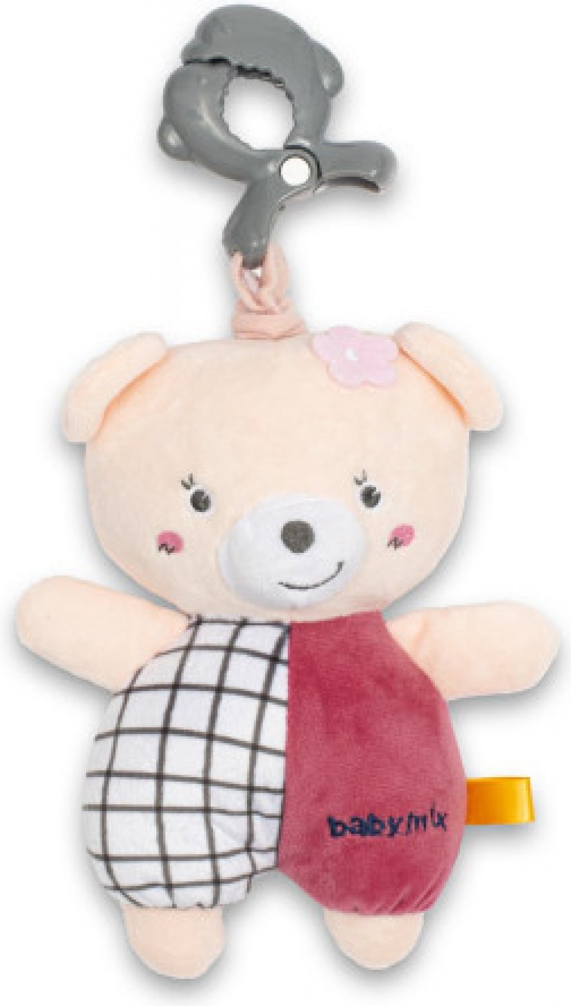 Плюшева іграшка для подорожей Ведмедик приємна на дотик, ніжного кольору і завжди усміхнена зробить привабливою будь-яку прогулянку. Зручна ручка у формі кліпси дозволяє закріпити іграшку в будь-якому місці коляски, крісла, автокрісла або ліжечка. Іграшка після смикання за шнурок грає приємна мелодія, яка заспокоює малюка, створює релаксуючу атмосферу. Підвіска Ведмедик - багатофункціональна розвиваюча іграшка, адже малюк вчиться координувати увагу, покращує зорове, слухове і дотикове сприйняття, розвиває дрібну моторику рук. З підвіскою Ваш малюк ніколи не буде нудьгувати, адже вона стане першим другом дитини