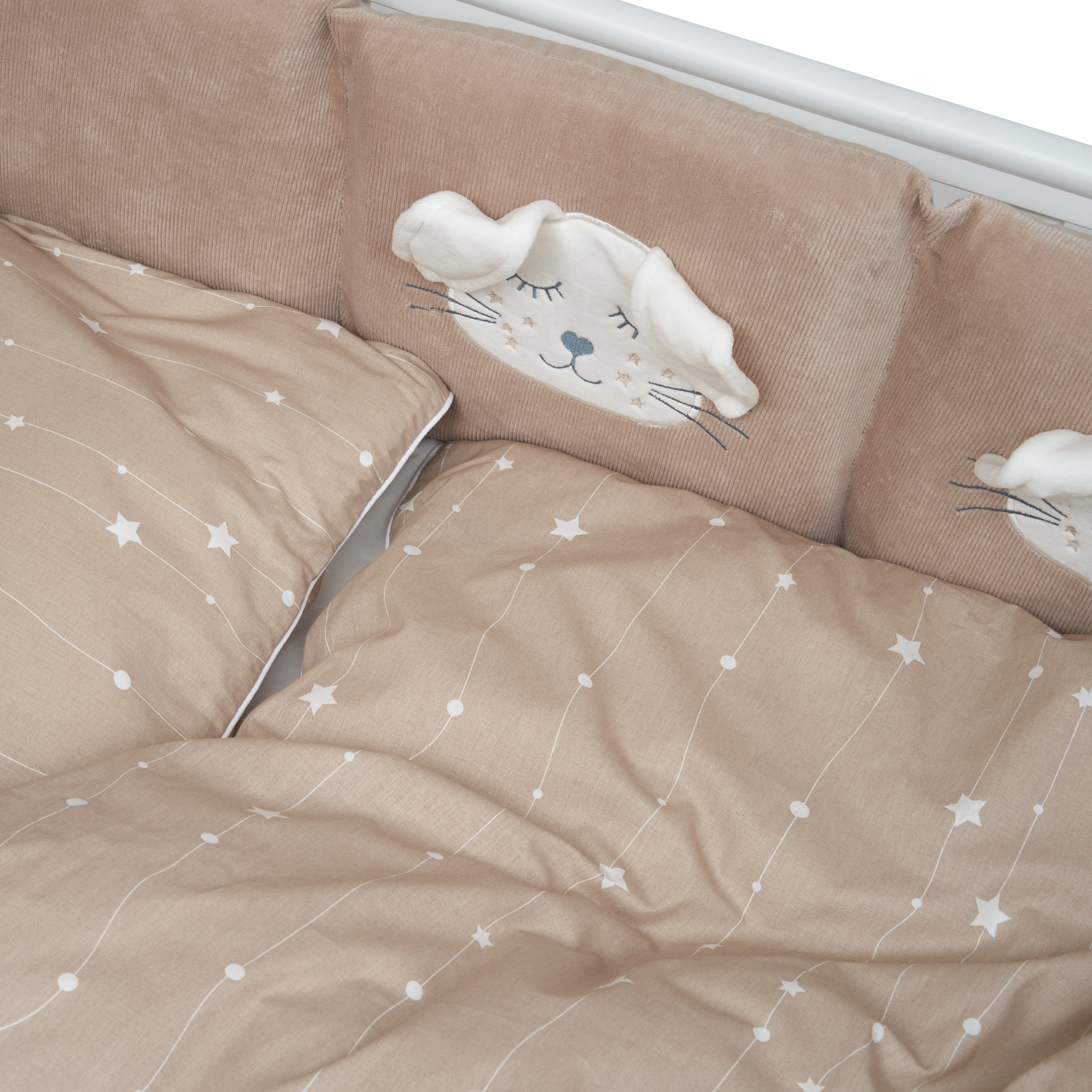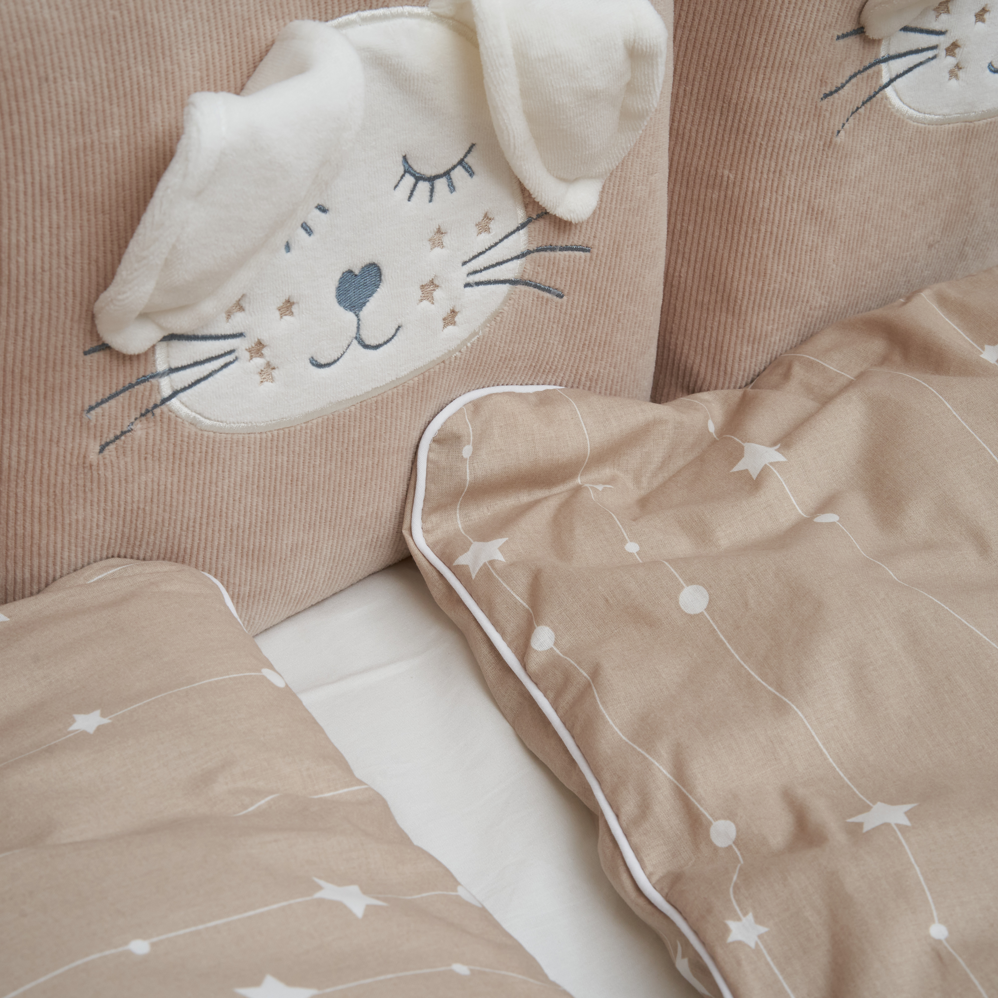 Мила вишивка кролика з об'ємними вушками надає постелі унікального вигляду та створює атмосферу затишку у дитячій кімнаті.