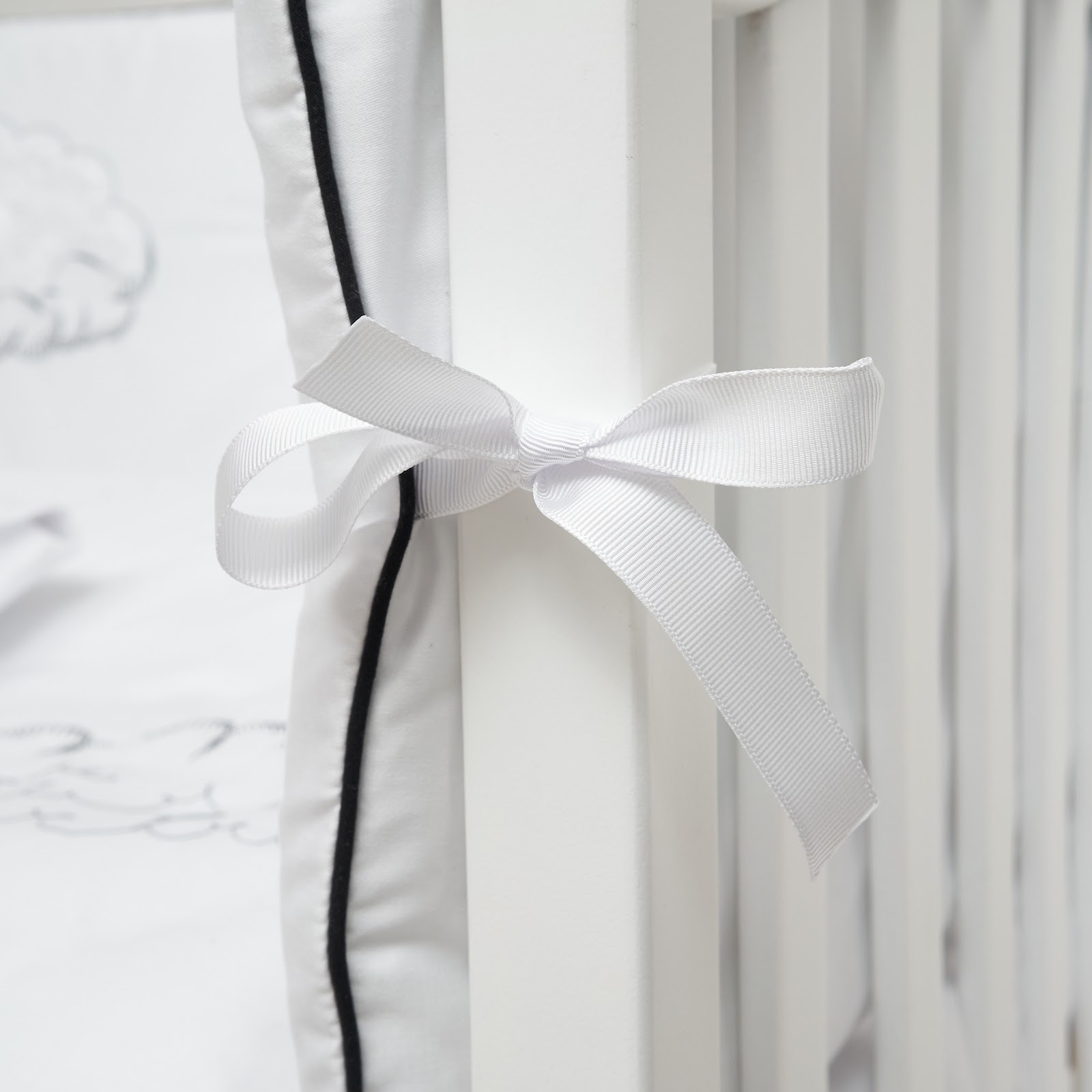 Унікальна особливість цього комплекту — два валики довжиною по 60 см, які розміщуються на четверту сторону ліжечка, надаючи додатковий захист і безпеку малюку під час сну.