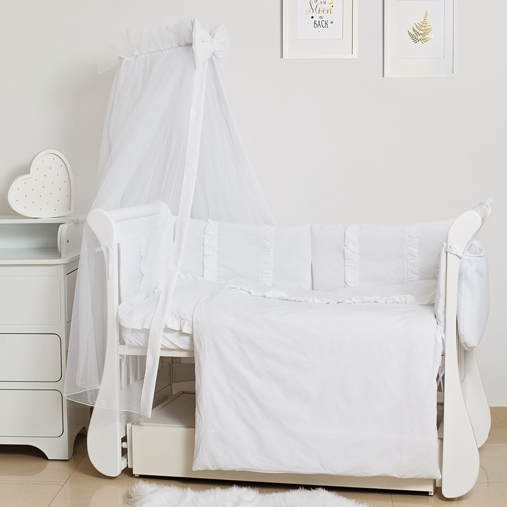 Постільний комплект Twins Romantic Spring – це гіпоалергенна тканина з бавовни преміум класу, наповнювач, безпечна конструкція і зручне використання. У комплект входить все необхідне. До того ж, всі елементи гармонійно підібрані за колірною гамою. Балдахін з візерунком чудесно гармонує до комплекту, також має захисну функцію від комах, які можуть залетіти в дитячу кімнату. У навісній кишені зручно зберігати необхідні дрібнички, які можуть знадобитися дитині вночі. Двосторонній бампер захищає від прямих протягів, ударів під час сну та ігор в ліжечку