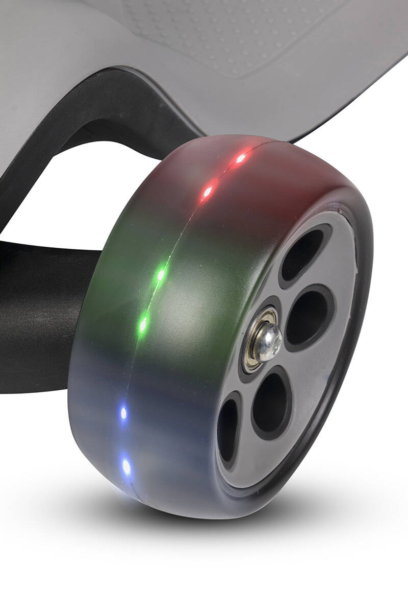 Колеса: поліуретан із підшипниками, світлодіодні